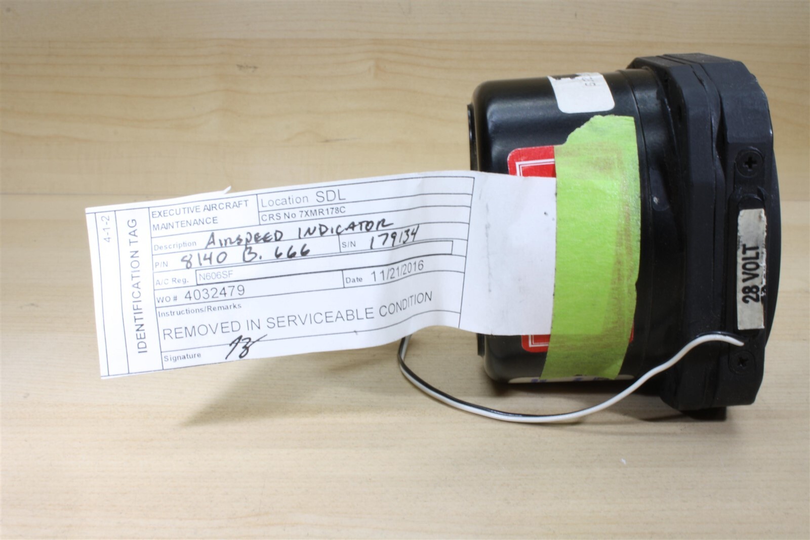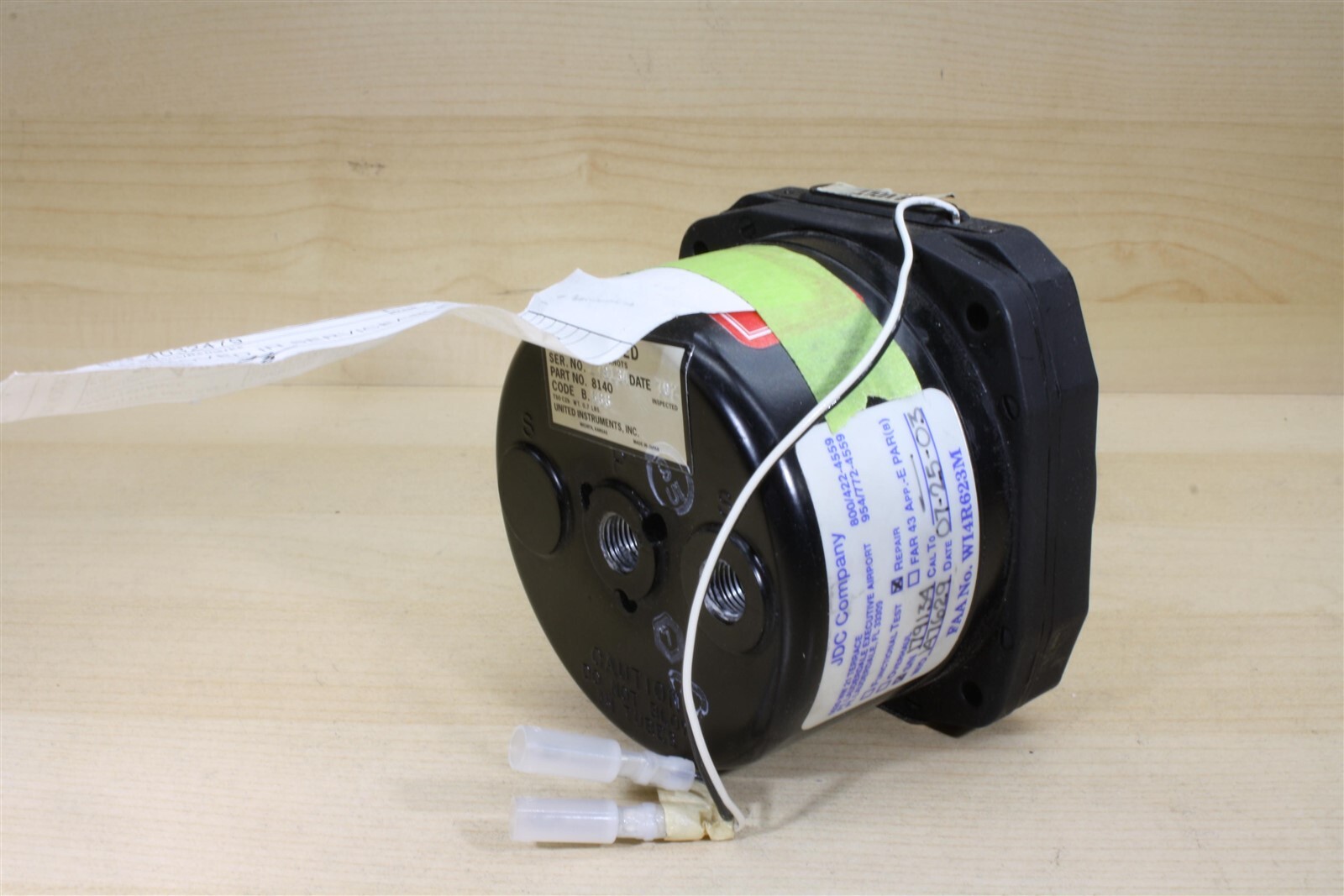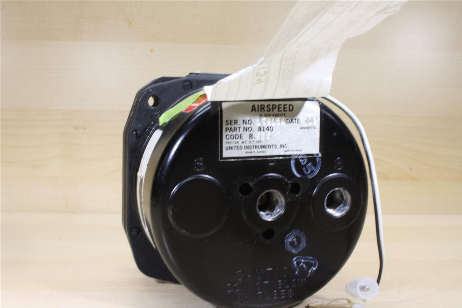 You are bidding on a United Instruments 8140 Airspeed Indicator with 28 volt lighting. Extremely clean physical condition, removal tag from Executive Aircraft Maintenance indicates 'Removed in Serviceable Condition.'