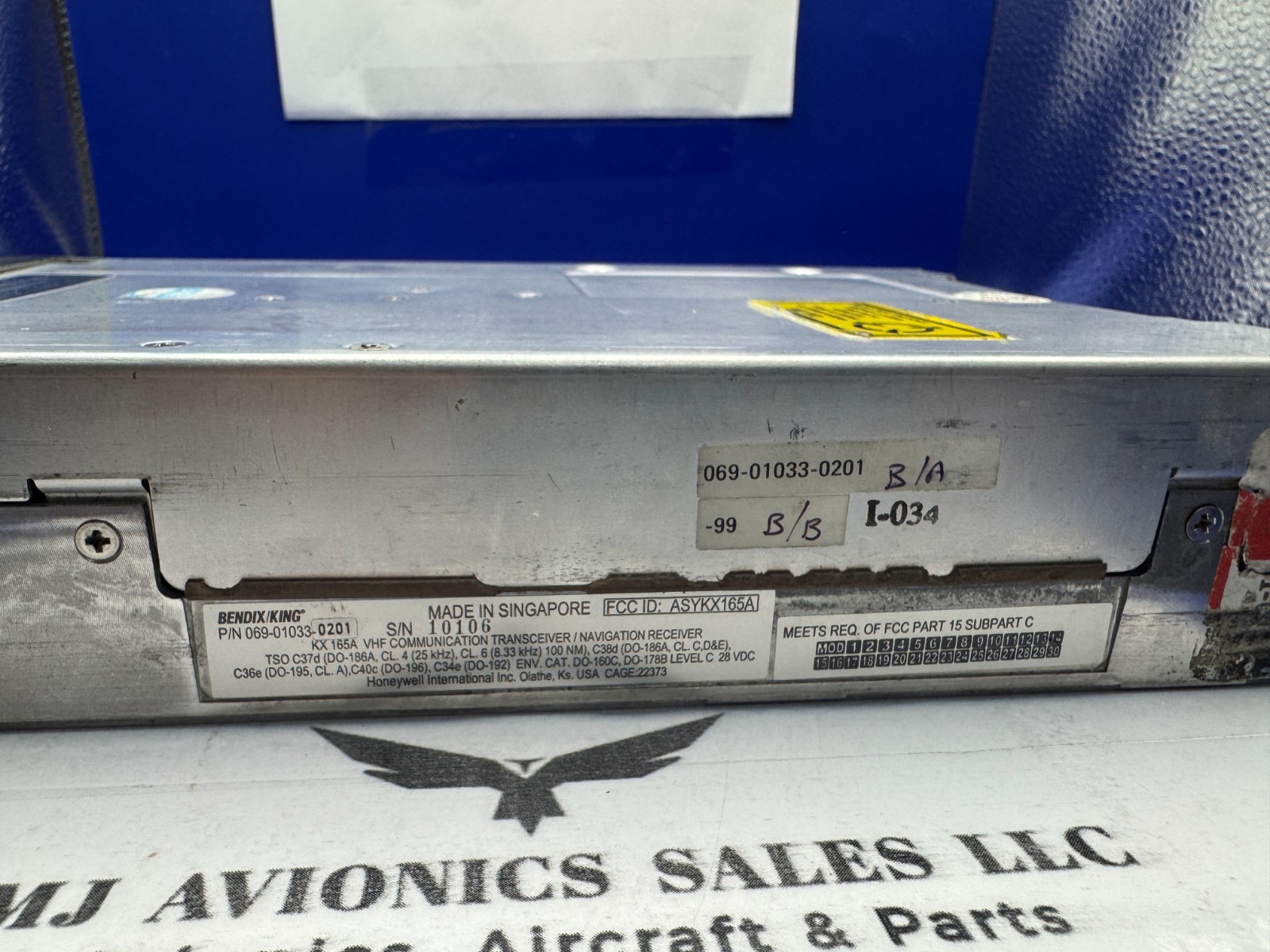 BENDIX/KING KX 165A 28 VDC P/N 069-01033-0201 S/N 10106 WITH GLIDE/SLOPE COME WITH FAA FORM 8130-3 DATED 10/23/2025 THIS UNIT NEVER BEEN INSTALLED SINCE BEEN BENCH CHECK.