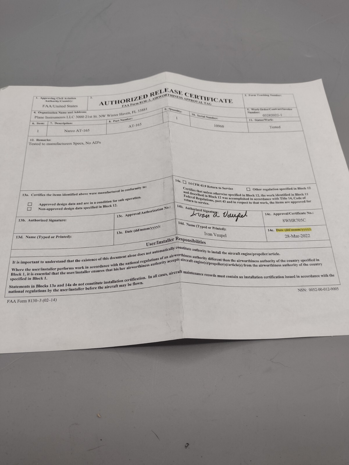 Used Narco Transponder AT-165Click here to purchase or contact the seller of this item on eBay |