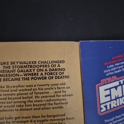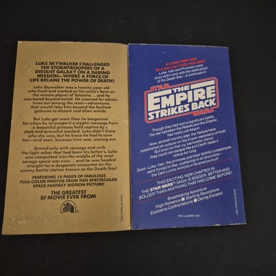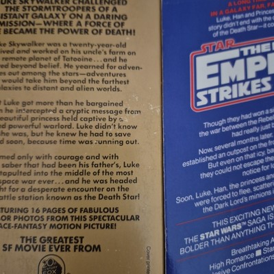 This product is a vintage paperback novelization of Star Wars and The Empire Strikes Back, published in 1977 and 1980 respectively. The novels fall under the genre of Science Fiction & Horror. These collectibles are from the United States and are considered vintage due to their age. The paperback books are in English language and are part of the Star Wars franchise's official canon. With their nostalgic appeal and connection to the beloved movie series, these novelizations are sure to be sought after by collectors and fans alike.