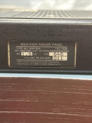 The Collins Weather Radar Panel PN: 622-6092-011 is a high-quality radar panel designed by Collins for precise weather monitoring. This product is manufactured with attention to detail, ensuring accurate readings for both aviation and meteorological purposes. With its reliable brand reputation and specific manufacturer part number, users can trust in the performance and durability of this radar panel to provide essential information in various weather conditions. Ideal for professionals and enthusiasts alike, this product is a valuable tool for understanding and predicting weather patterns.
