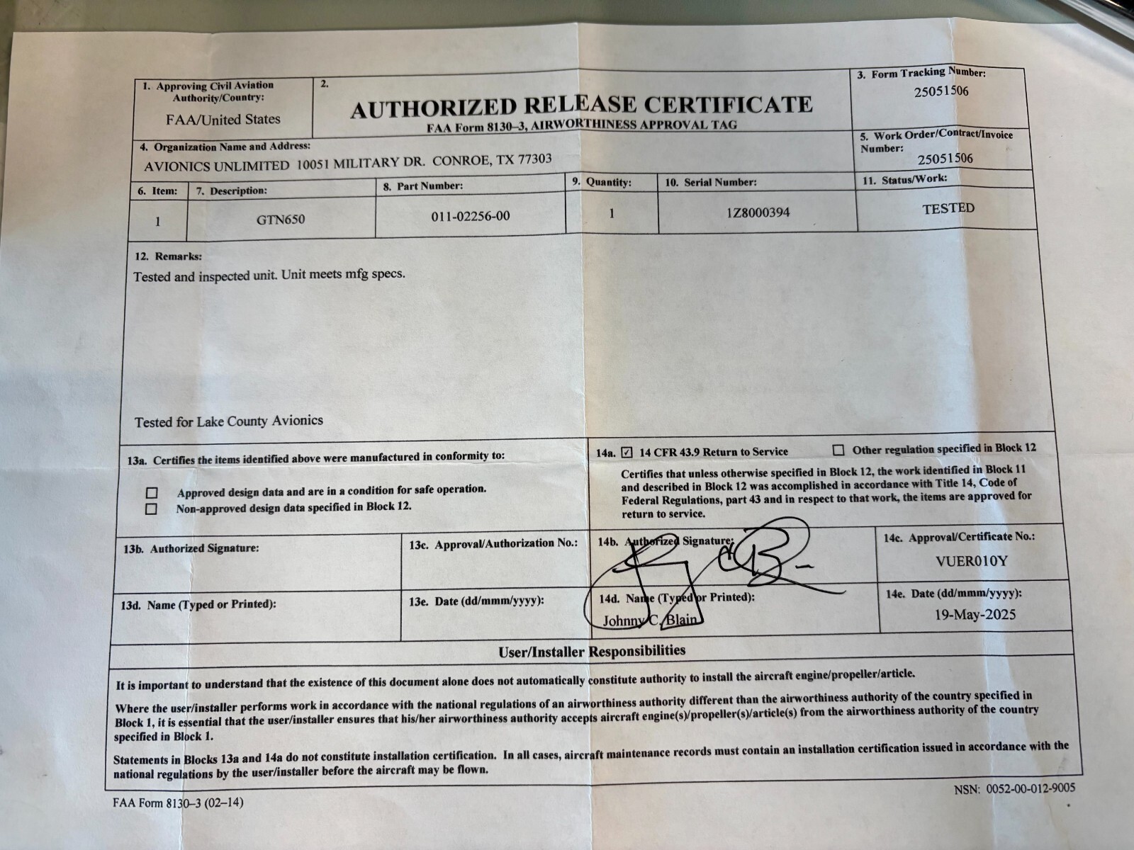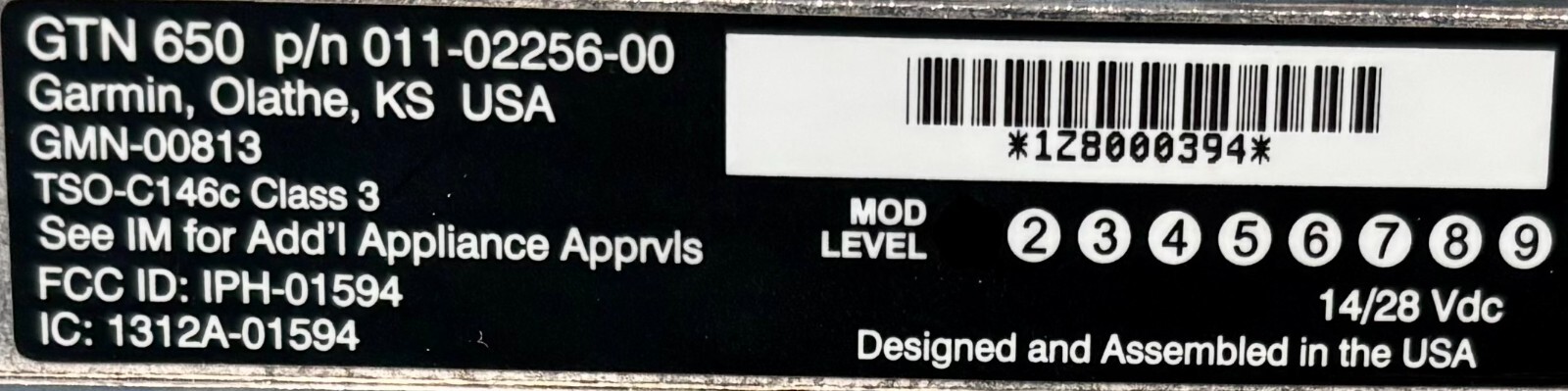 GPS Receiver GTN650 011-02256-00 w/ May 2025 Tested 8130