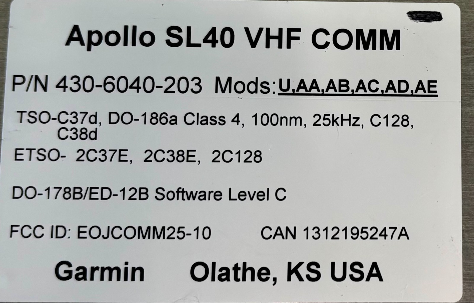 VHF Comm SL40 430-6040-203 w/ September 2025 Tested 8130Click here to purchase or contact the seller of this item on eBay |