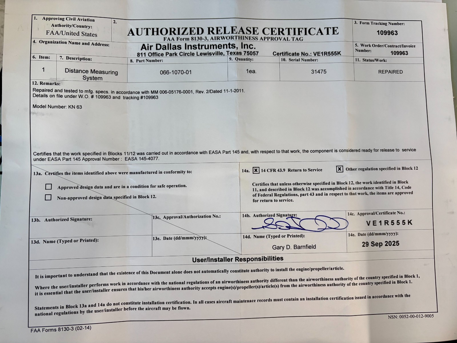 DME KN63 066-1070-01 w/ September 2025 Repaired 8130