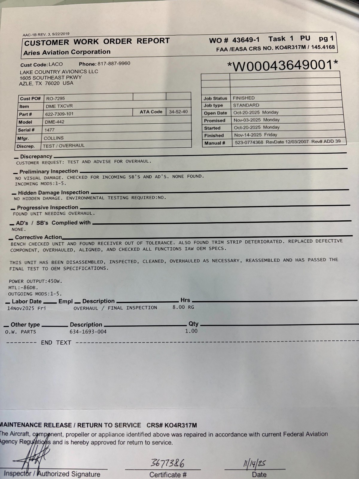 DME Transceiver DME442 622-7309-101 w/ November 2025 Overhauled 8130Click here to purchase or contact the seller of this item on eBay |