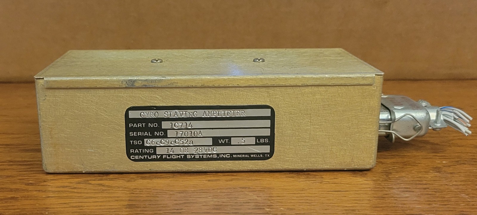 The Century HSI Navigation Situation Display NSD1000 P/N 52D189 is a high-quality avionics display designed for aviation enthusiasts and professionals. With the brand being Century, a trusted manufacturer in the industry, this navigation situation display offers reliable performance without a warranty. The manufacturer part number 52D189 ensures that you are getting the specific product you need for your aircraft, providing essential information for safe and efficient navigation during flights. Also included is one (1) Century Flight Systems Gyro Slaving Amplifier, P/N 1C714, SN 17010A