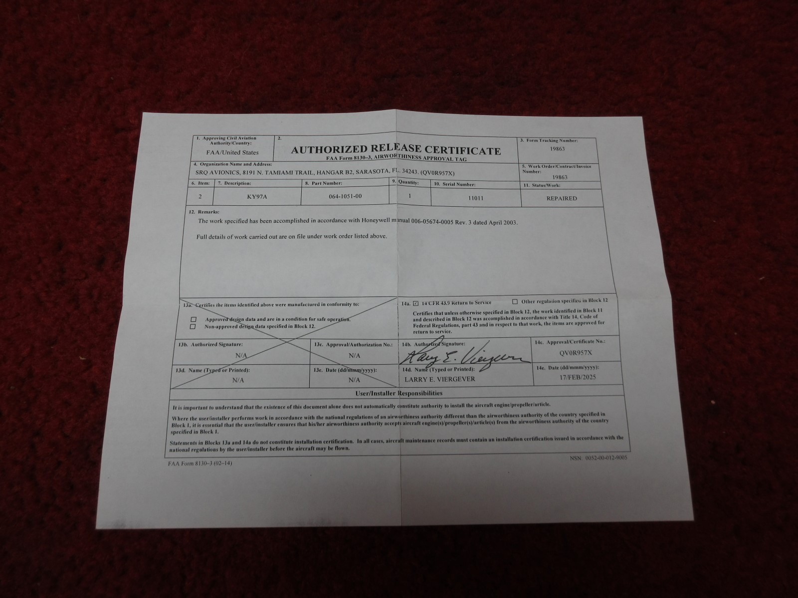 Warning to purchasers/recipients: The aircraft parts you are purchasing or receiving, unless stated otherwise on ad, may not be in compliance with applicable Federal Aviation Administration (FAA) requirements. You are solely responsible for bringing the aircraft into compliance with 14 CFR Chapter I, or other applicable standards, by obtaining all necessary FAA inspections or modifications. Please ask your questions before purchasing. We try out best to present all items as accurately as possible.