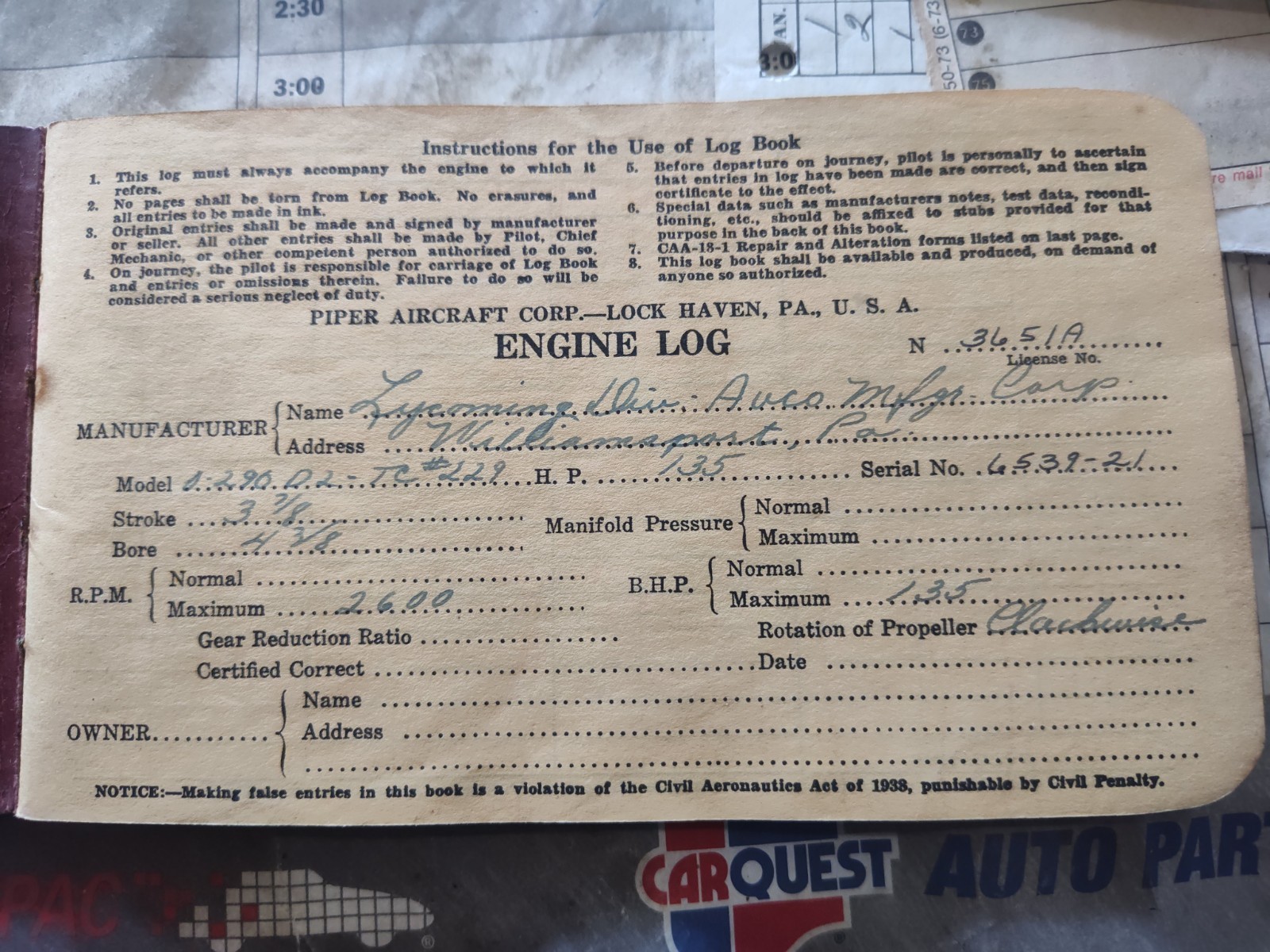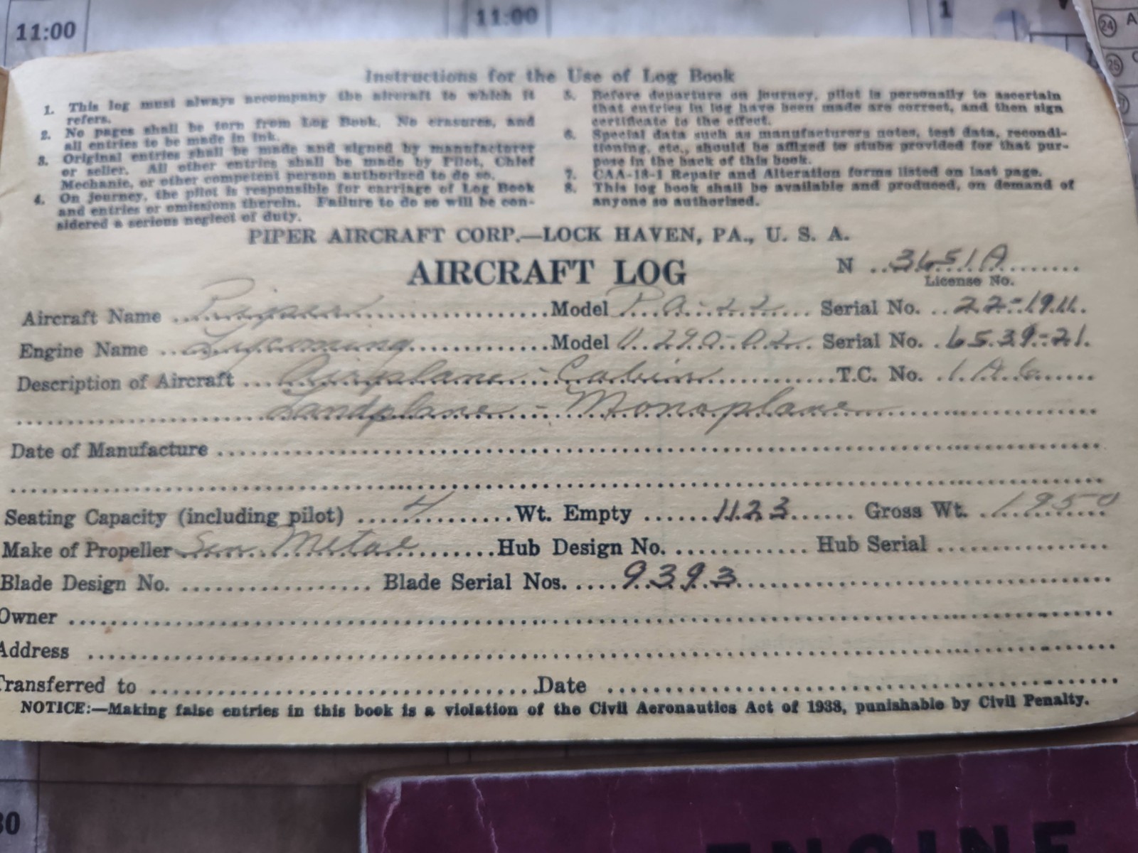 1954 Piper Tri PacerClick here to purchase or contact the seller of this item on eBay 0 290 D2 -135 hp / needs covered / needs annual / |