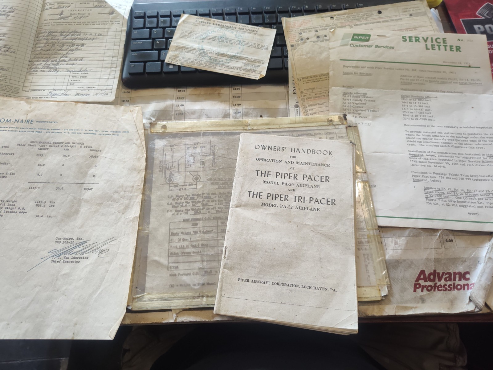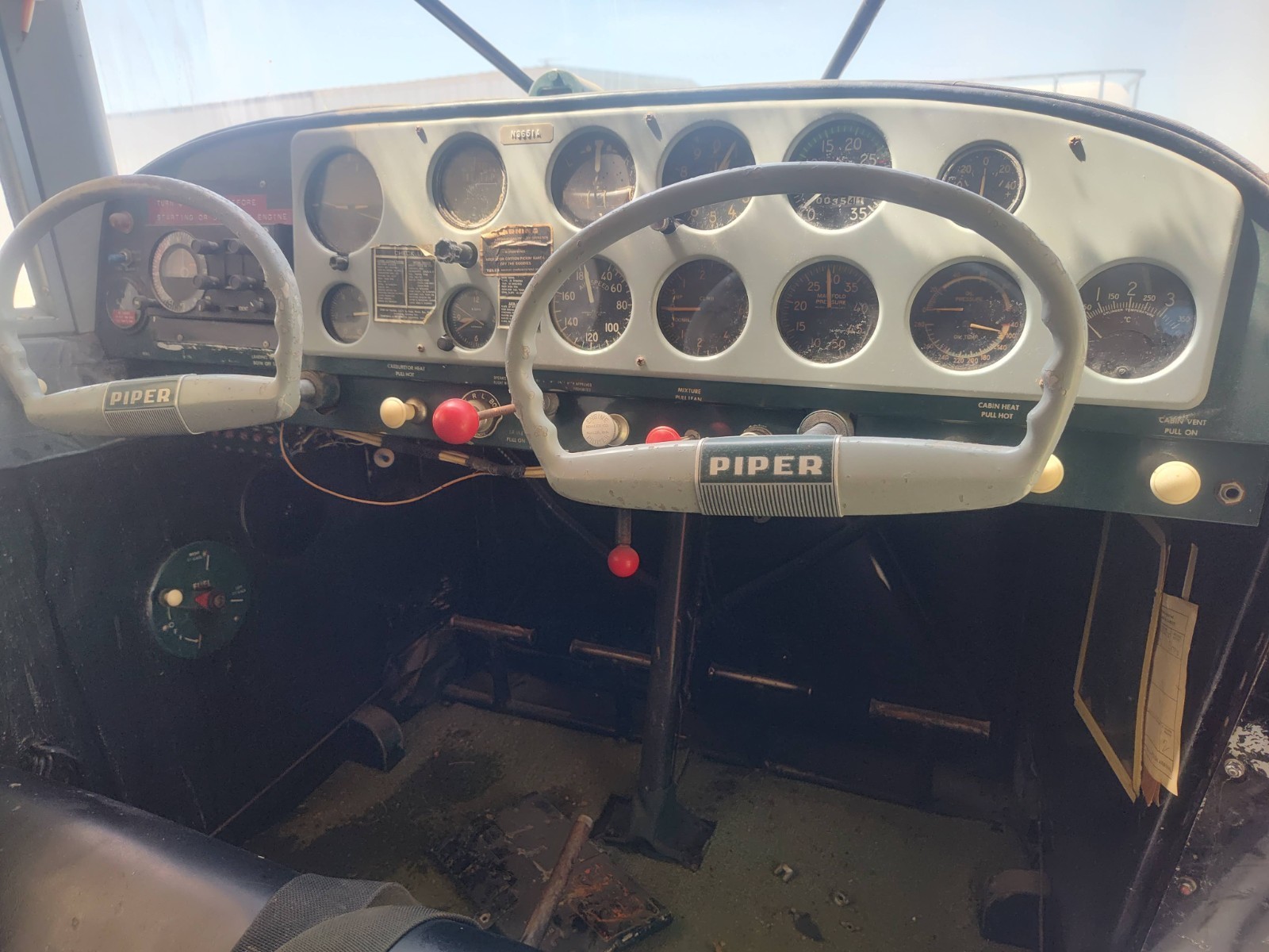 1954 Piper Tri Pacer. As you can see.. She's been sitting a day or two. Actually, 50 years, by the complete airframe and engine log books and airworthiness certificate (which we have, last annual was written in was 1975) . I'm not sure if it was that I needed the hanger space alone or a deep seeded love to think someone besides my kids would spend some time and money on her and put her back in the skies again. Either way, I need it gone sooner than later. It has roughly 2,386 hours total time since new and appears the engine would have had a top end put on it within a couple hundred ours of her hibernation. Equipped with a Lycoming 0 290 D2 135 hp engine that still has compression on every cylinder and a Sensenich Aluminum prop. ( We may make her run again before it sells.) . The interior is complete and nice. Both gas caps are missing and two of the engine cowl clips. Other than that, she appears complete down to the tires. The airplane is worth more in parts than as a whole. But I am not... in any way... interested in selling parts from this aircraft. This airplane will be sold as is, Where is and will not fly out of here. It needs recovered and will have to be trailered away. It will come with an FAA bill of sale 8050-2 and you will get everything I have with it down to the airworthiness cert. ( the tail number is expired and would have to be renewed or changed. Please don't think it will fly out of here on a ferry permit. I do have a friend who would pull the wings and deliver the aircraft and charges accordingly as that is how he makes a living. We are not doing a pre buy inspection and if you bid, you own it, not a bid to see if you want it. Have your ducks in a row and cash in hand if you bid. If you have any questions.. contact me and I will do everything to accommodate more pics or details prior to bidding so we are both happy with the end results.., all contact information is at the bottom of the ad. P.j.