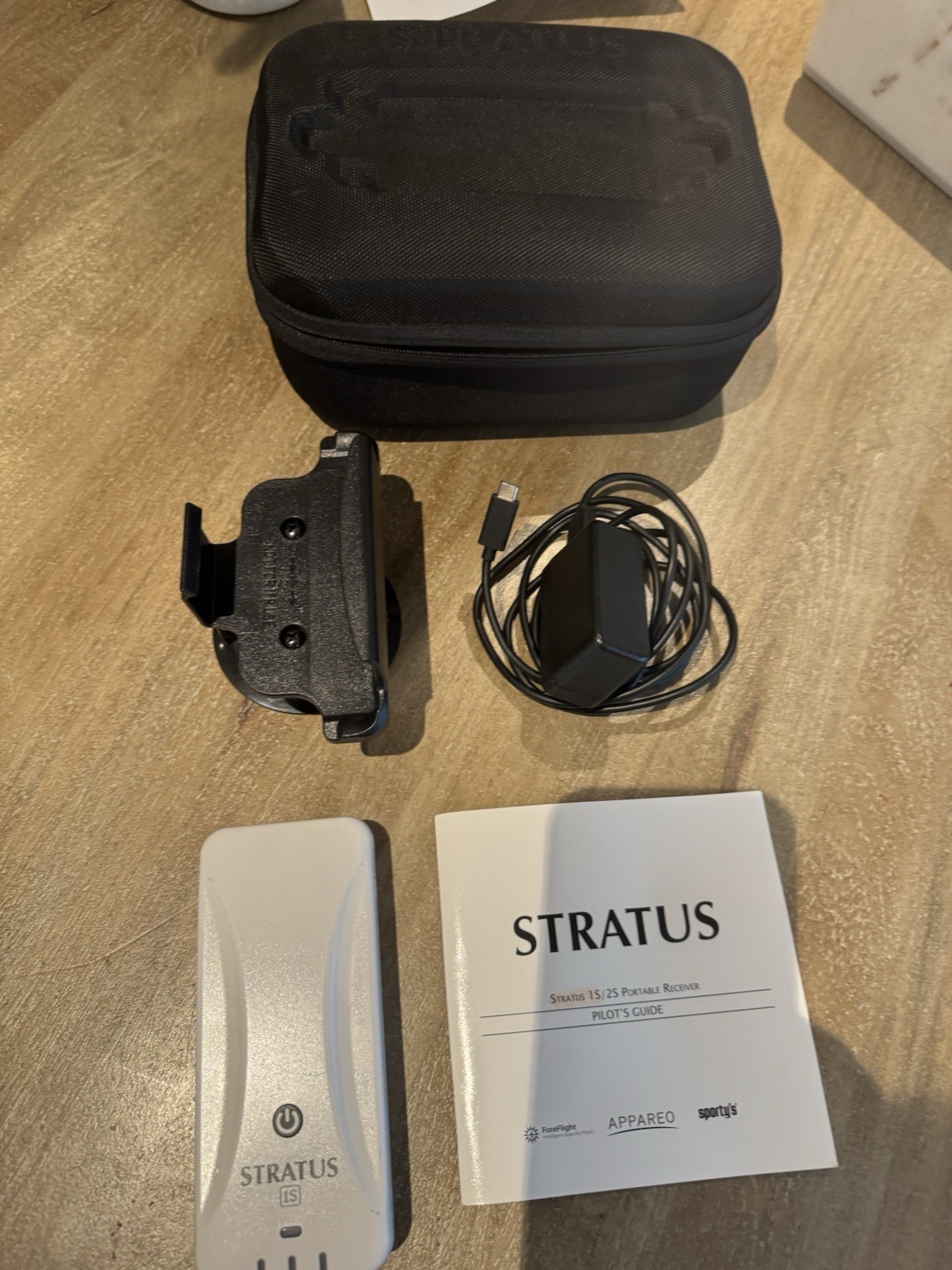 Appareo Stratus S1 ADSB portable device. Comes with manual, case, windshield/window mount, charger.