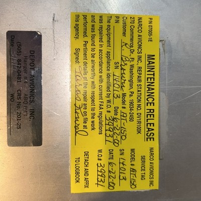 Narco AT 150 TSO Transponder w/Tray - Tested Working when removedClick here to purchase or contact the seller of this item on eBay |