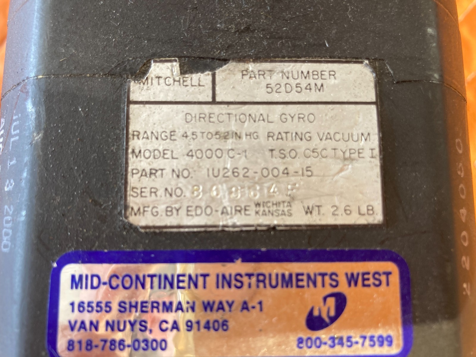 Directional Gyro Vacuum Mitchell/ Edo Aire P/N 52D54M