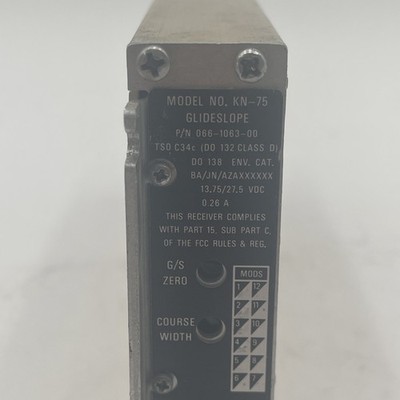 The previous owner informed us when he removed this it was in working condition. However, we have not independently tested it so please purchase with this in mind. We will accept returns for any major issues. The King Radio KN 75 Glideslope receiver is a high-quality avionics part manufactured by Bendix King. Specifically designed for Avionics makes, this receiver is a reliable and essential component for aircraft navigation and control. With its precise design and compatibility with Avionics systems, the King Radio KN 75 Glideslope receiver ensures a seamless and accurate performance in the aircraft cockpit.