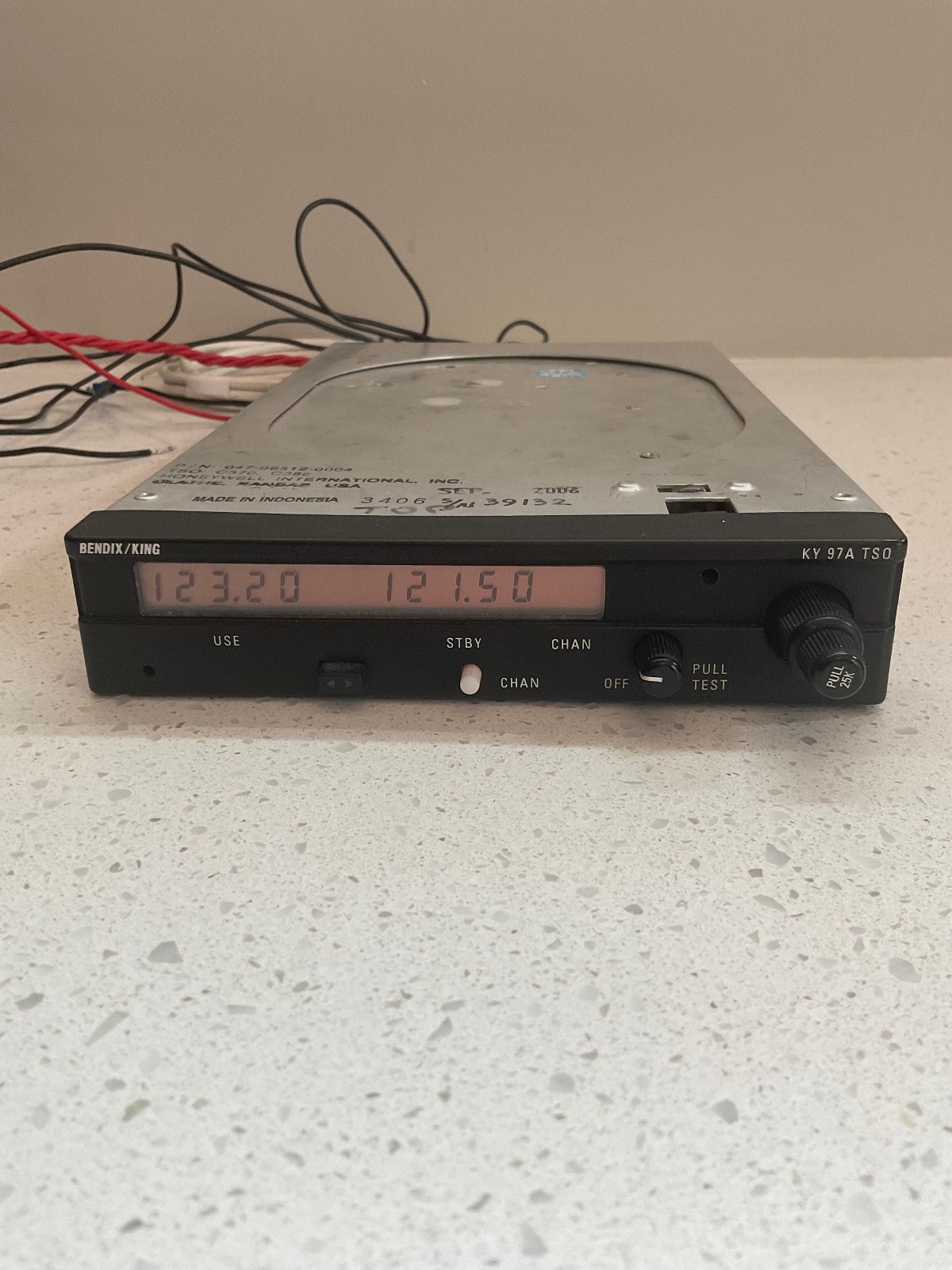Bendix/King KY 97A TSO, working great when removed for avionics upgrade. 14 volt. Includes tray, connector and harness.