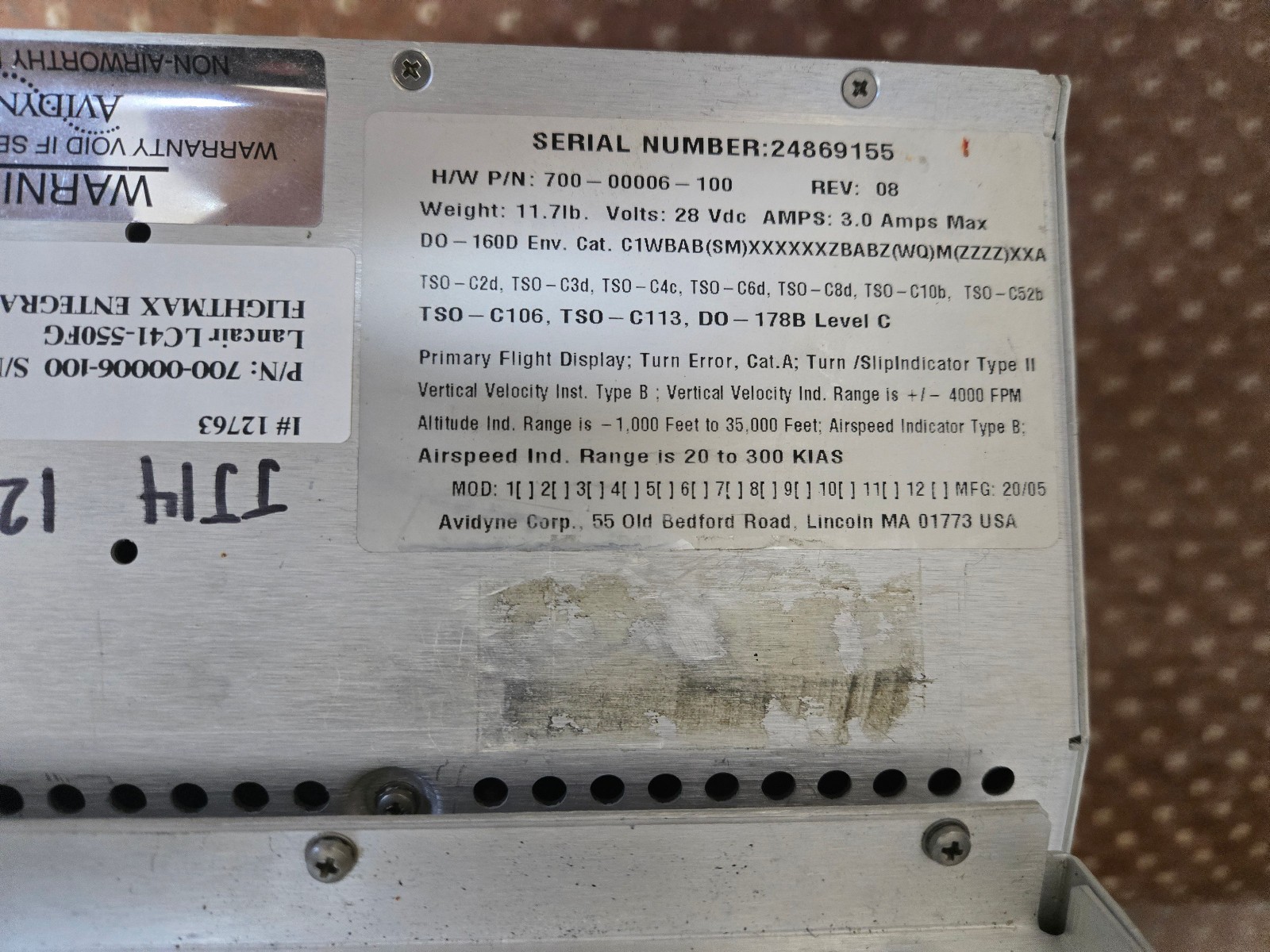 Avidyne FlightMax Entegra MFD PN 700-00006-100