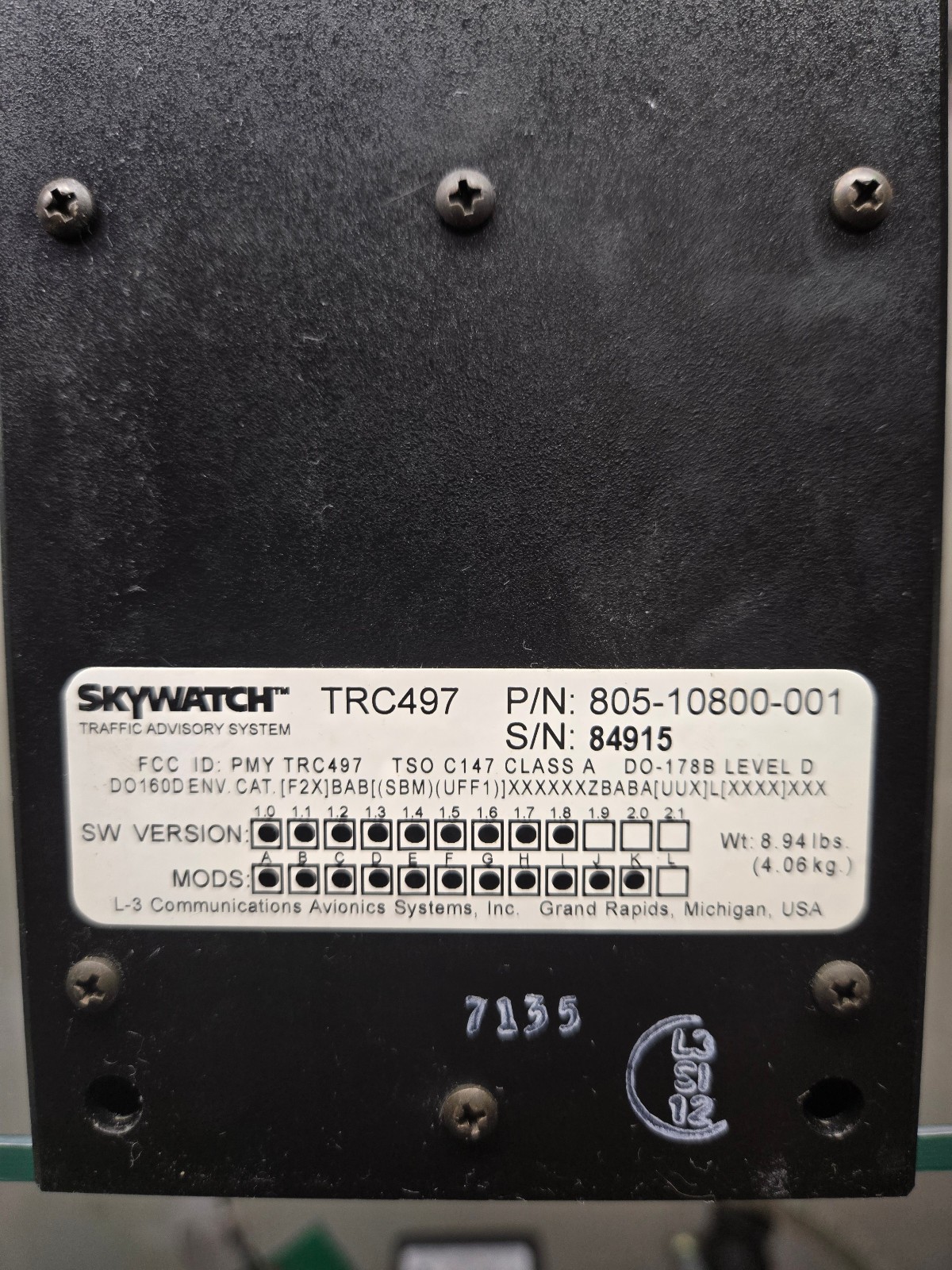 Skywatch TRC497 Traffic Advisory System PN 805-10800-001