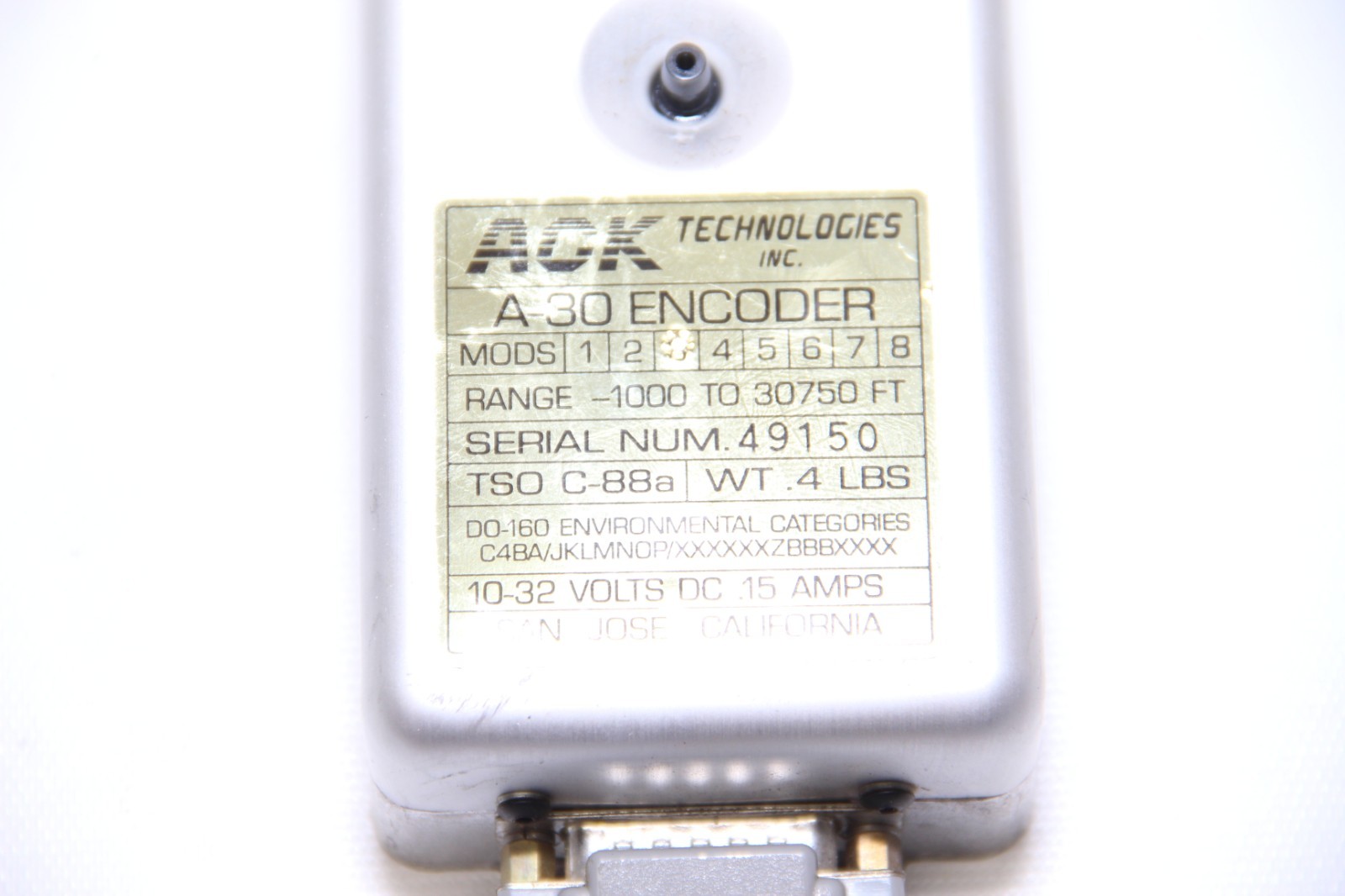 ACK Technologies Altitude Encoder, P/N: A-30. As Removed, Good Condition, mild surface wear from use.
