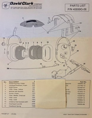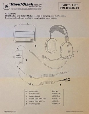 David Clark Headset P/N: 40941G-01 Series Head Set Instructions / Wiring DiagramClick here to purchase or contact the seller of this item on eBay |