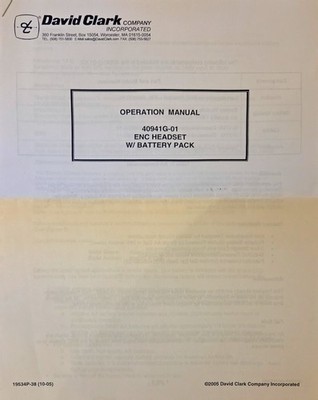 David Clark Headset P/N: 40941G-01 Series Head Set Instructions / Wiring Diagram. Condition is Used. Shipped with USPS Ground Advantage.