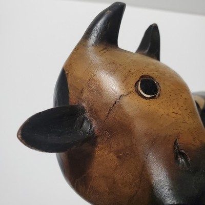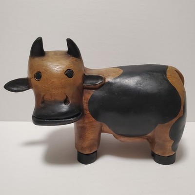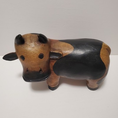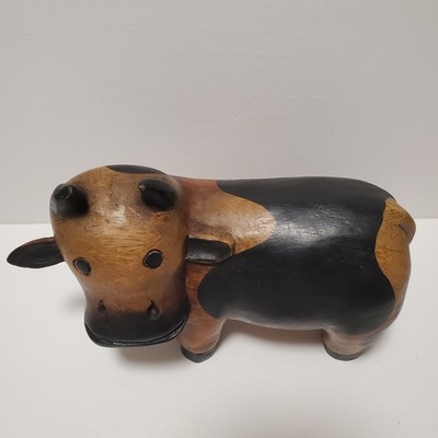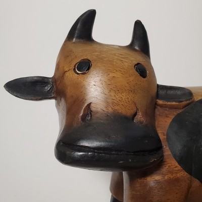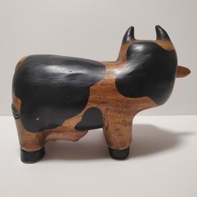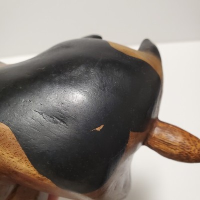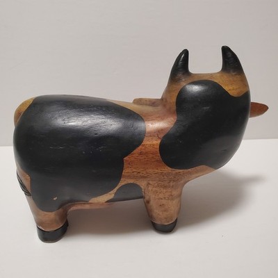 Vintage Folk Art Wooden Hand Carved Solid Cute Cow Heavy Figure Statue 9"Click here to purchase or contact the seller of this item on eBay |
