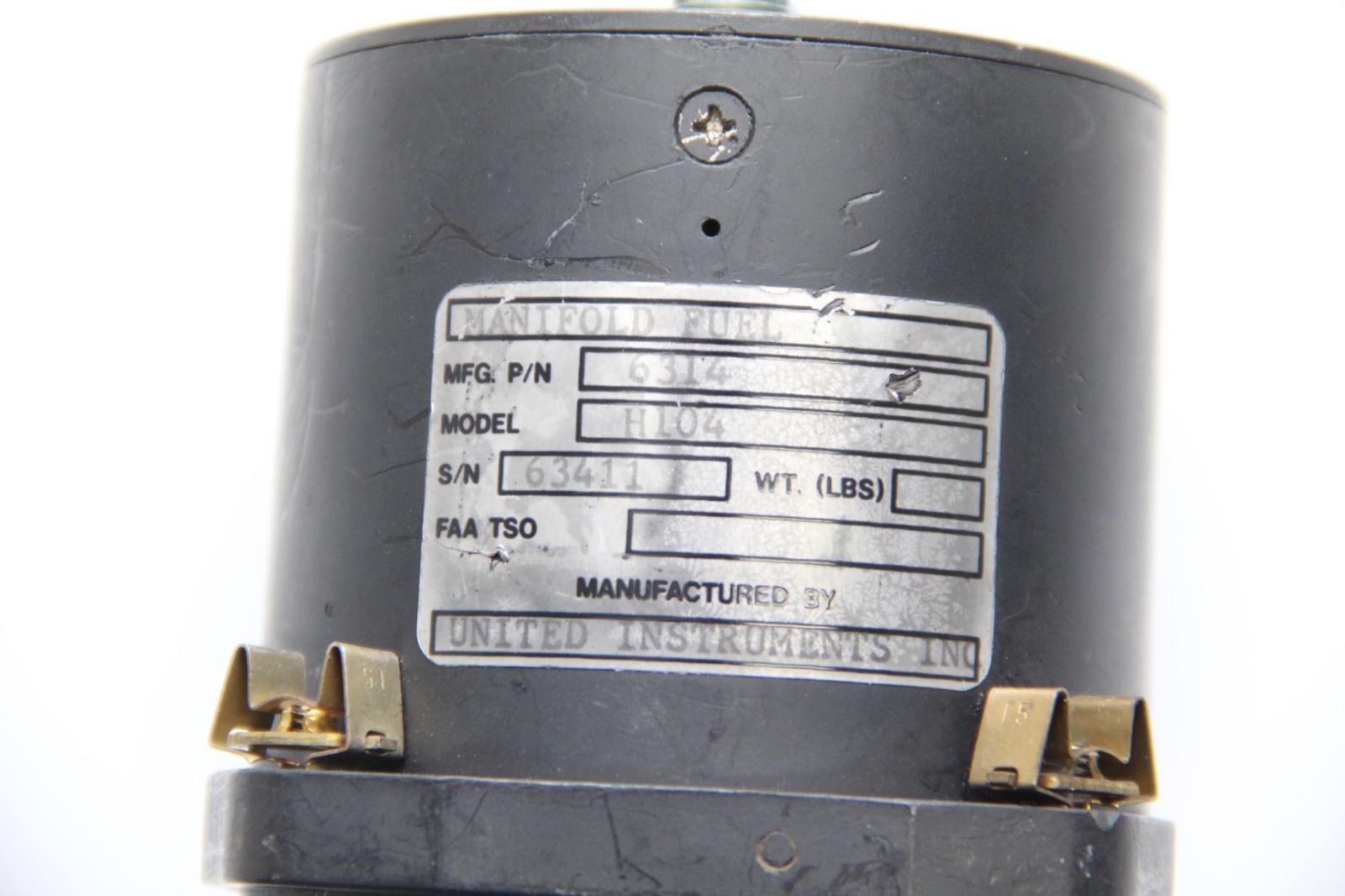 United Instruments Manifold & Fuel Pressure Indicator Gauge, P/N: 6314. As Removed, Good Condition, mild surface wear from use.