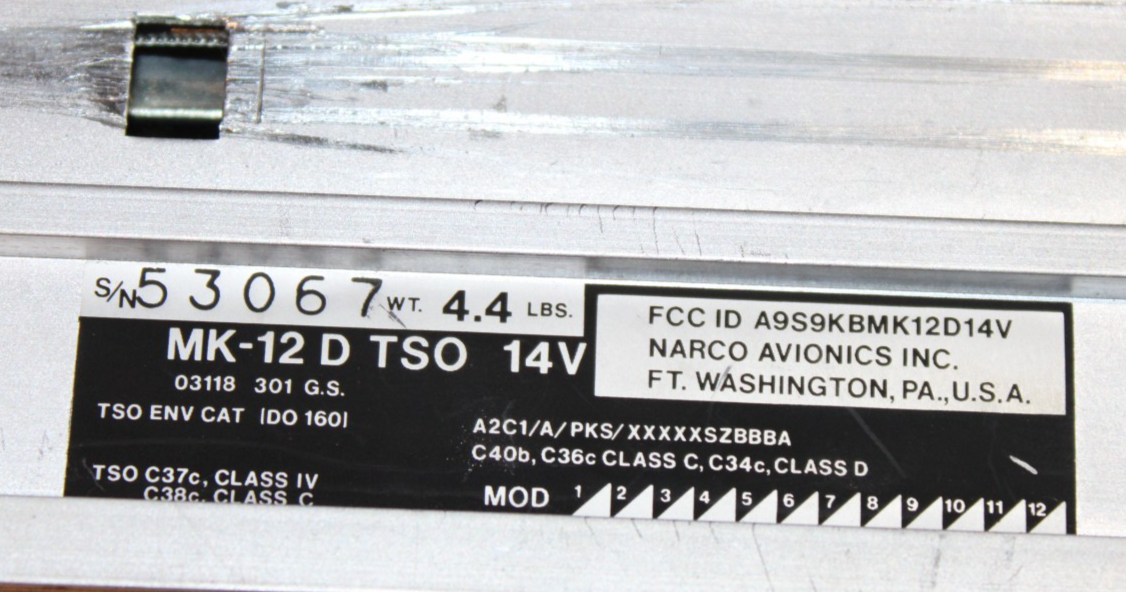 Narco Avionics INC. MK-12 D TSO NAV/COMM 14V ( Used & Untested )Click here to purchase or contact the seller of this item on eBay |