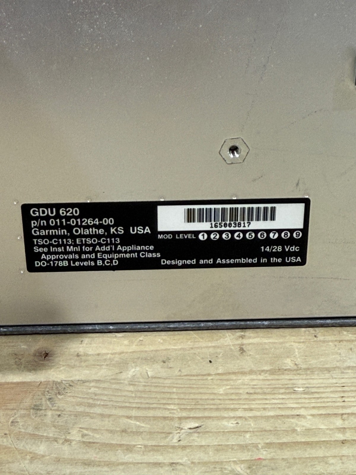 GARMIN GDU620 (G600 ONLY) PART NUMBER #011-01264-00. GDU620 COMES WITH CONNECTORS AND DATACARD. GDU620 IN GREAT CONDITION. PLEASE SEE PICTURES. GDU620 TAGGED WITH 8130 BY SARASOTA AVIONICS.