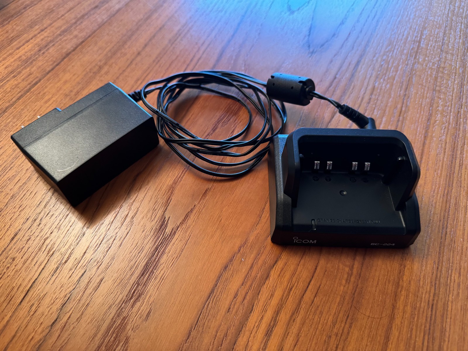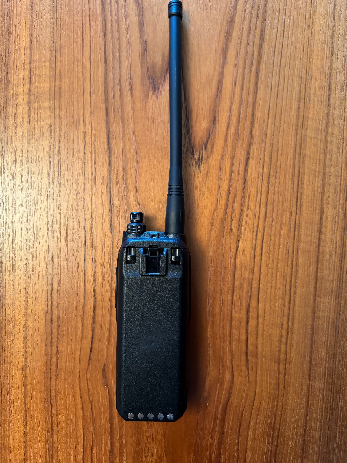 The radio and antenna are in excellent cosmetic and working condition, with no scratches or signs of heavy use. Buttons, display, and charging contacts are clean and fully functional.