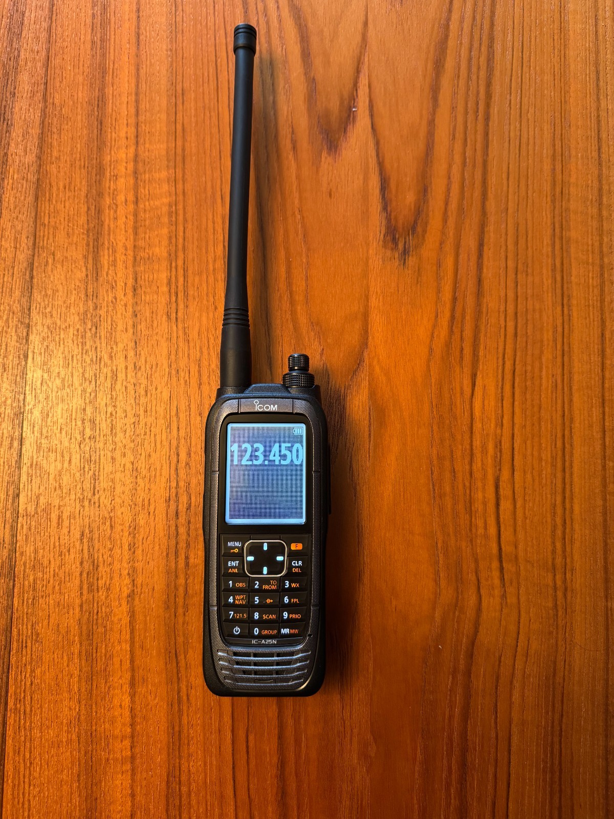 - Icom IC-A25N radio (NAV/COM version with GPS, Bluetooth, and VOR)