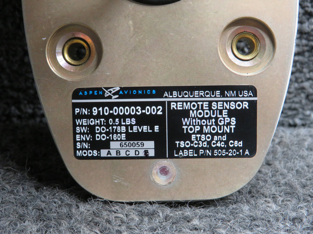 910-00003-002 Aspen Avionics Remote Sensor Module without GPS Top Mount