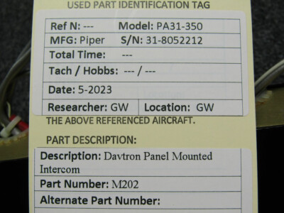 Attention International Buyers: We routinely export aircraft parts to destinations around the world. All import duties, taxes, and any other charges related to importing parts to your country are not included in the price of the item or shipping charges, these are 100% the responsibility of the buyer. Please check with your country's customs office to help determine what these additional costs will be prior to purchasing. We do not mark merchandise value below purchase value nor mark items as "gifts" as both U.S. and international law strictly prohibits this. We do not ship to forwarding shipping stations. A business or residential address is required for delivery.