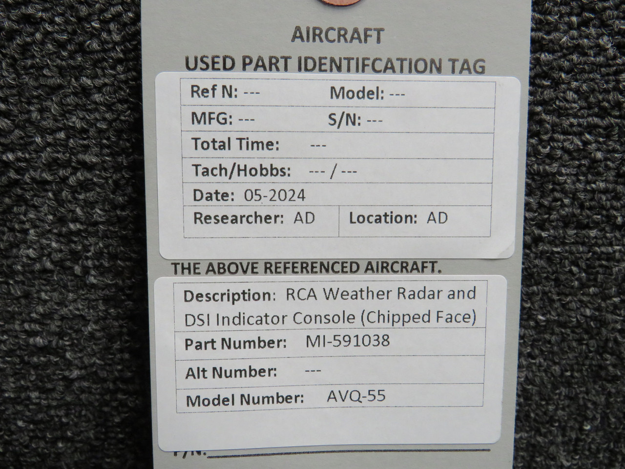MI-591038 RCA AVQ-55 Weather Radar and DSI Indicator Console (Chipped Face)