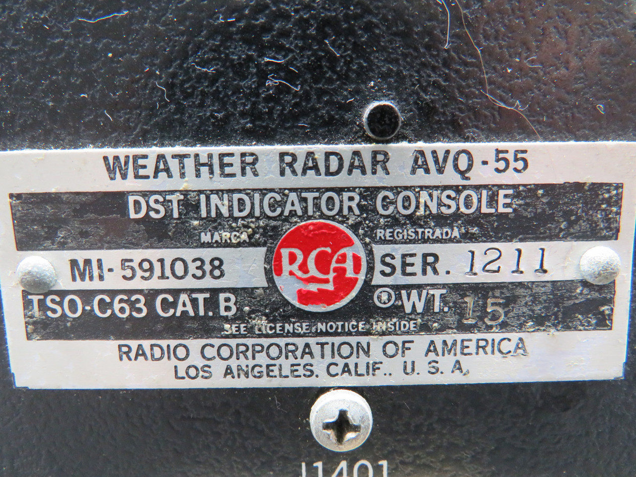 MI-591038 RCA AVQ-55 Weather Radar and DSI Indicator Console (Chipped Face)Click here to purchase or contact the seller of this item on eBay |