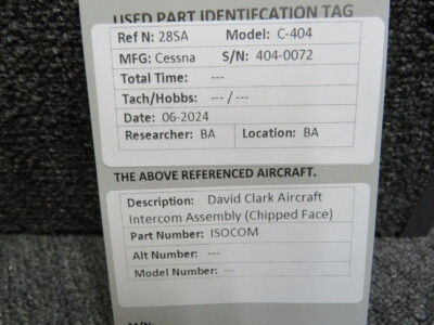 ISOCOM David Clark Aircraft Intercom Assembly (Chipped Face)Click here to purchase or contact the seller of this item on eBay |