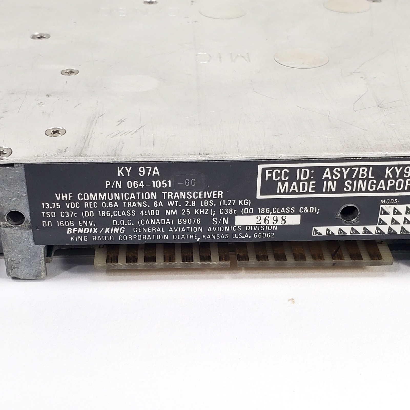 Bendix King KY97A VHF COMM 14v w/ Tray 064-1051-60 w/ 8130Click here to purchase or contact the seller of this item on eBay |