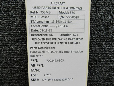 Unless specifically noted, most of our used airplane parts are sold in the condition they were removed, which means you should expect the usual signs of wear and tear.