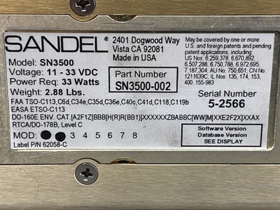 SN3500-002 Sandel SN3500 Primary Navigation Display Unit Assembly (11-33V)Click here to purchase or contact the seller of this item on eBay |