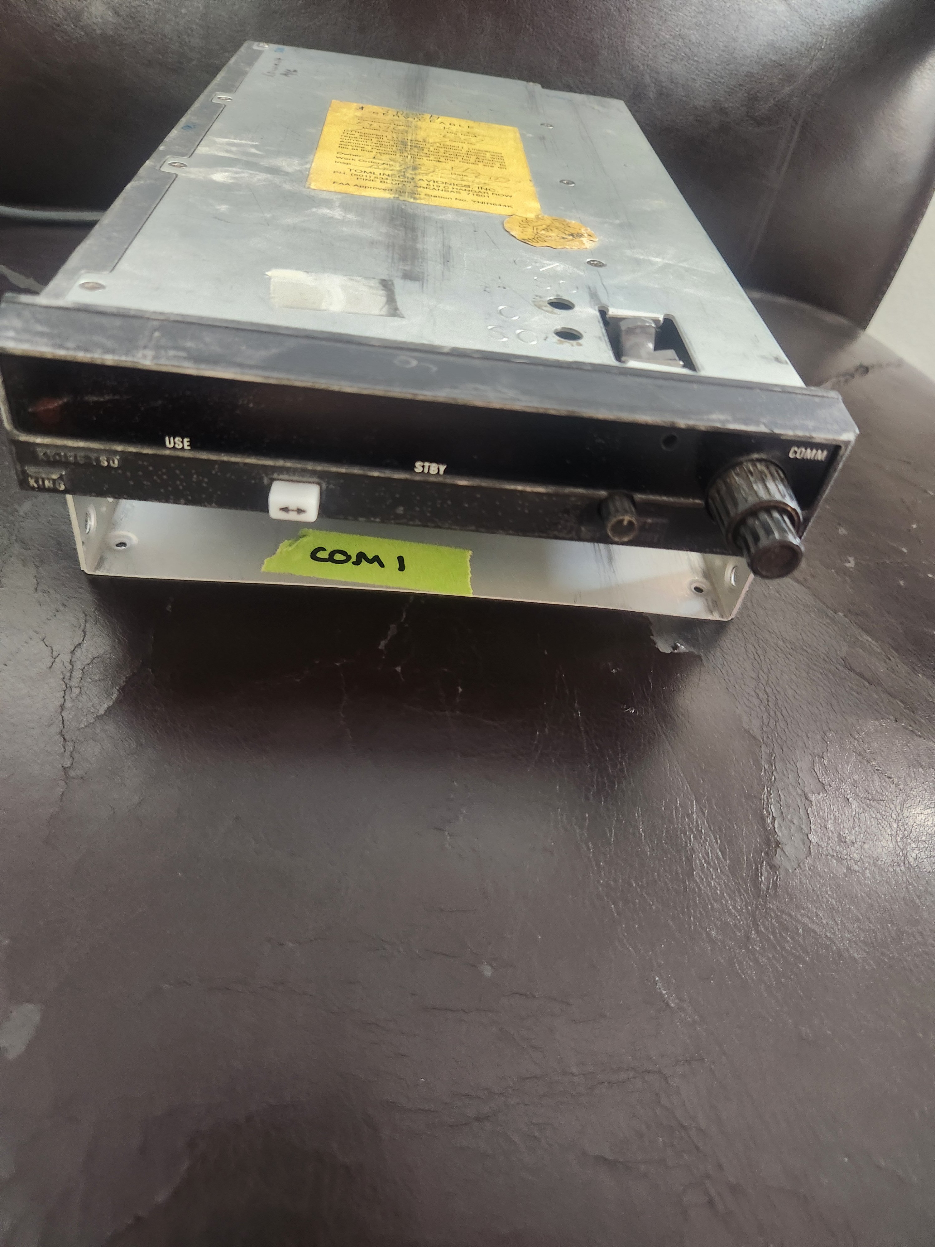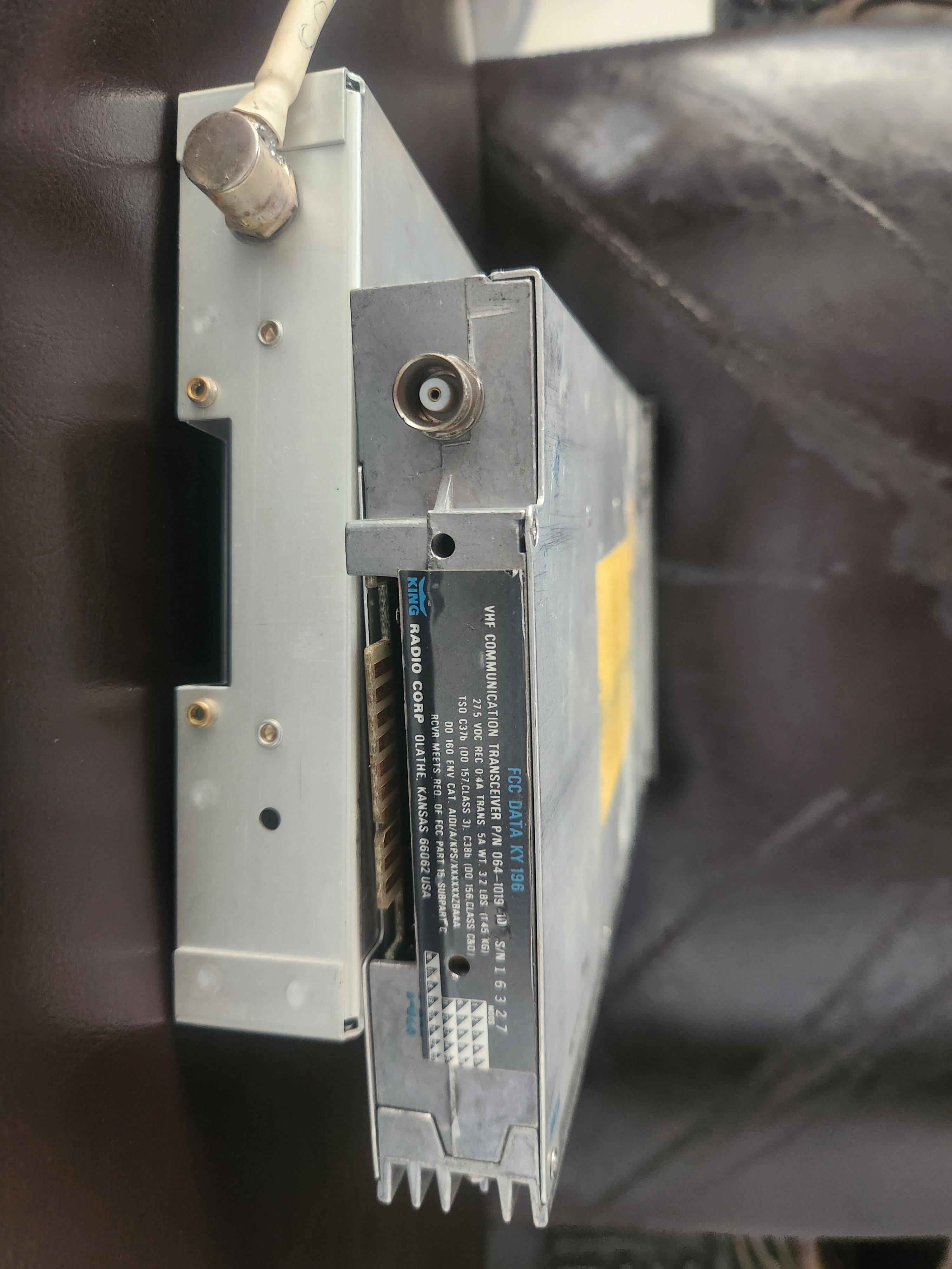 Bendix King KY 196 unit needs repaired. Includes tray and connector. SN 16327. 28 Volt unit. Non working unit.