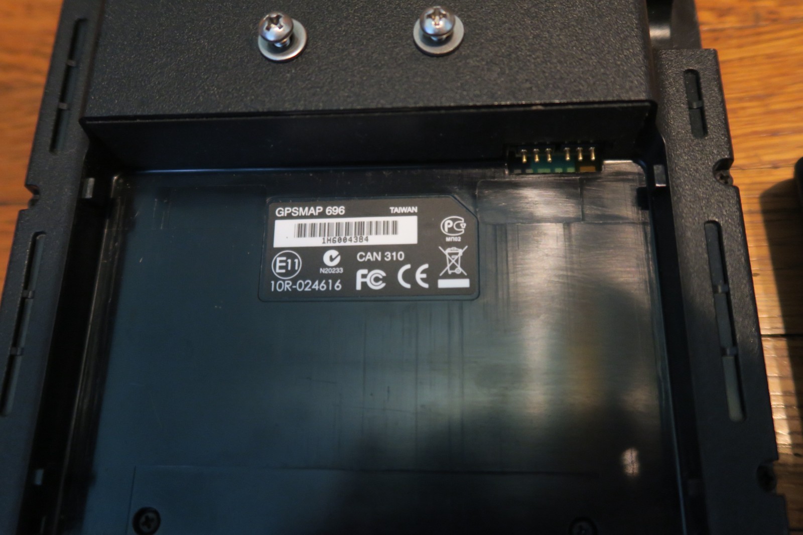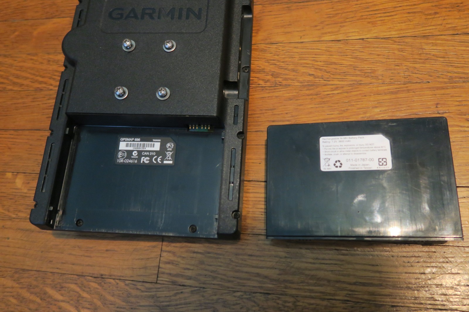 Includes Garmin 696 unit, battery (needs repair/replacement), and AC adapter