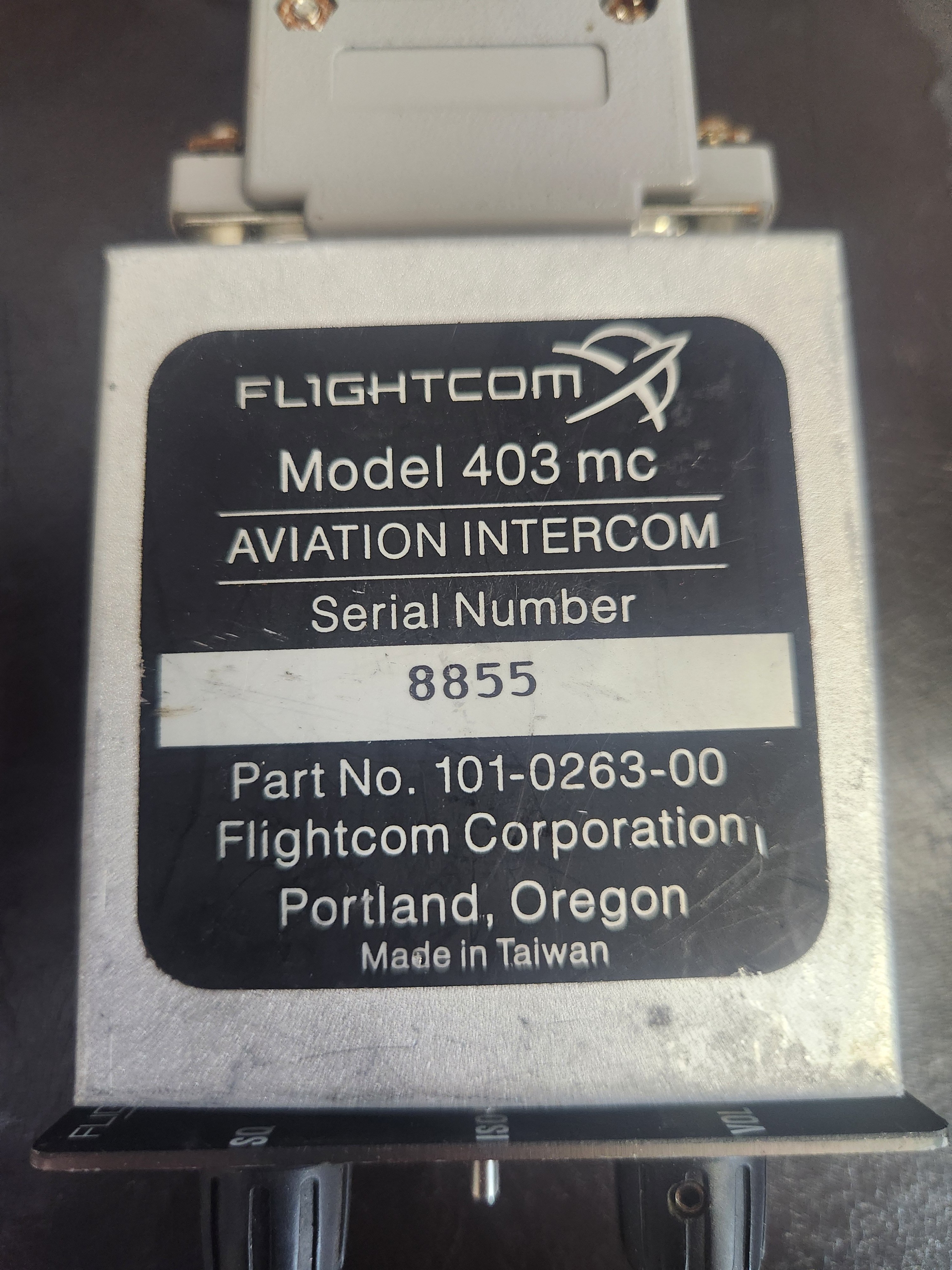 Flightcom 403mc InterCom. Working when removed. PN 101-0263-00 SN 8855. With connector.