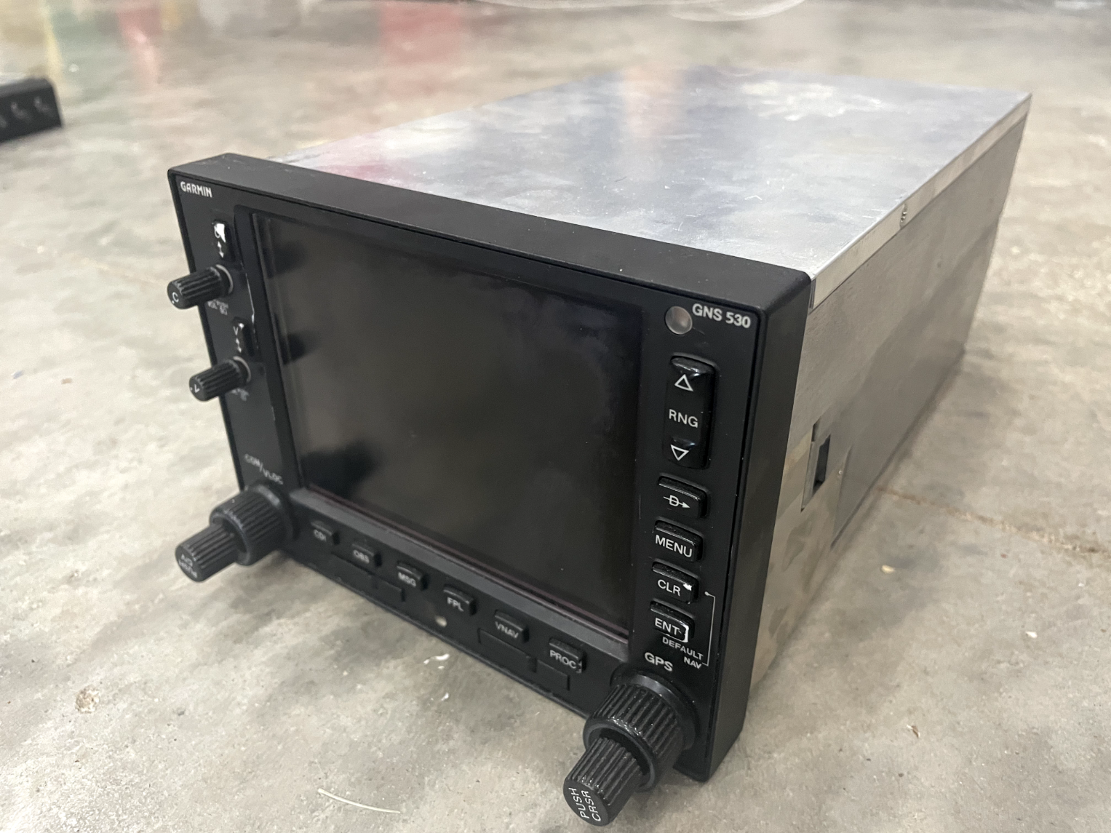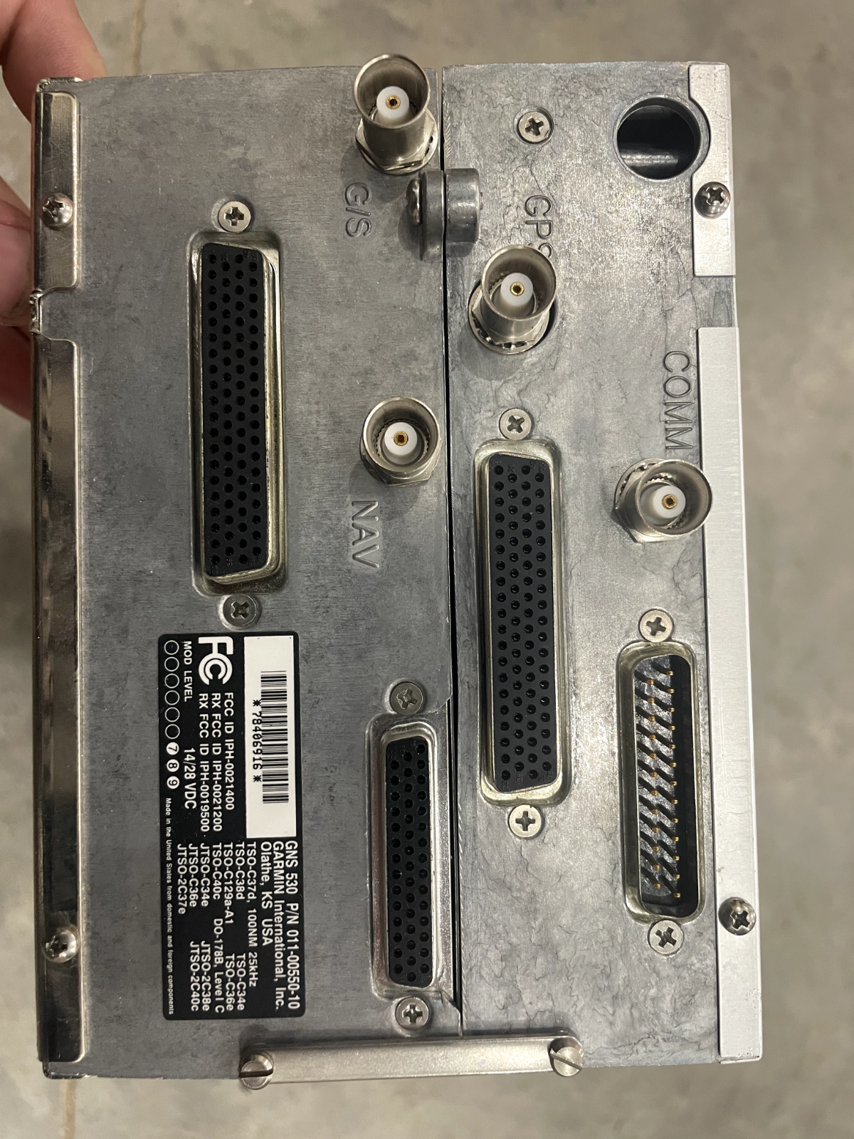 Garmin GNS-530 IFR GPS NAV/COM PN 011-00550-10 with backplate, tray, connectorsClick here to purchase or contact the seller of this item on eBay |