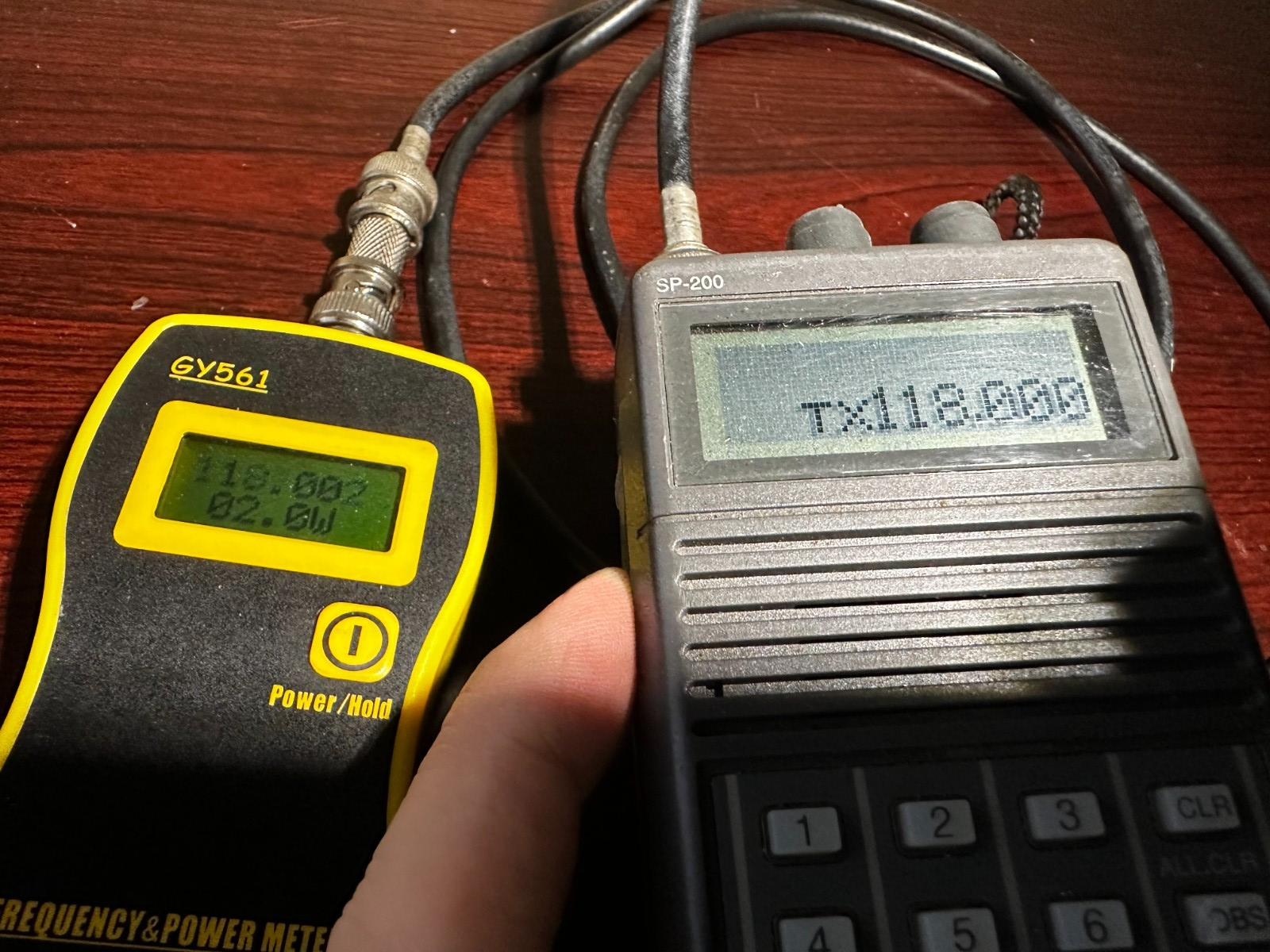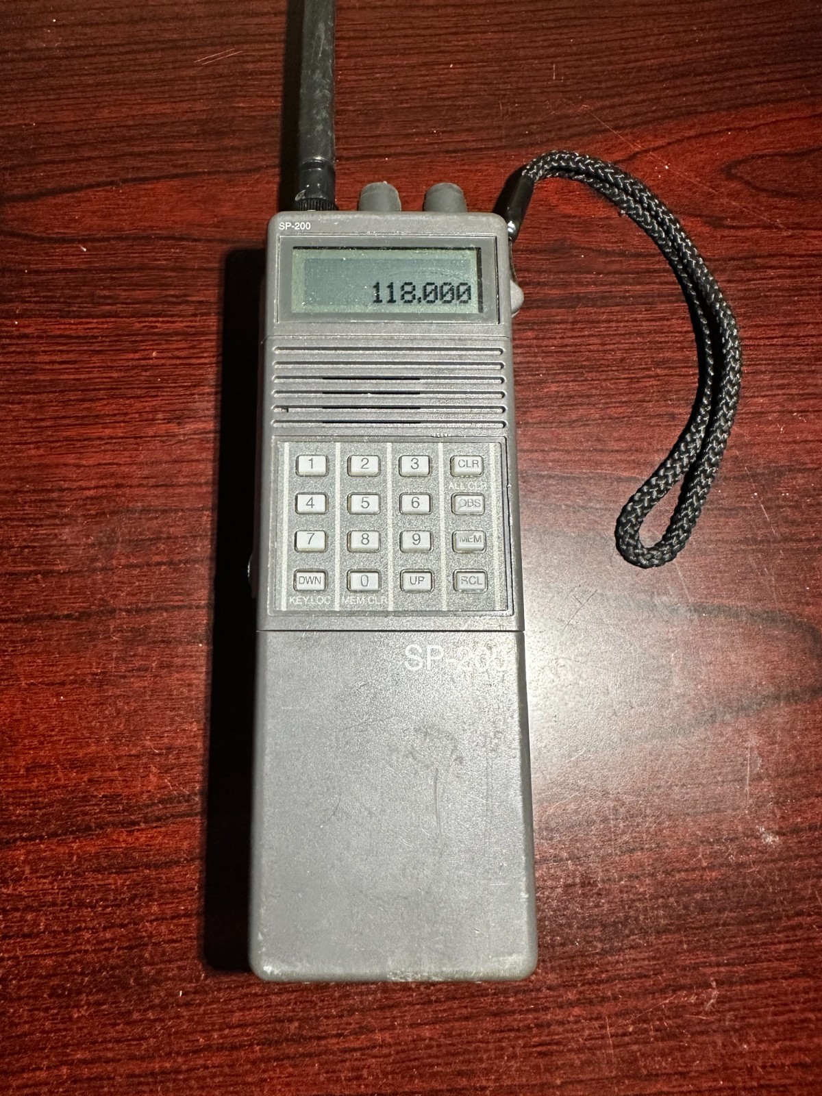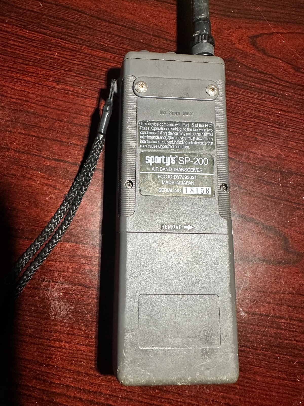 Sporty’s SP-200 as pictured. Tested and shown to transmit strongly. Shows wear and tear from use. The battery compartment previously had corrosion on the contacts. The contacts were removed, sanded, put back, and they now make consistent contact for reliable portable operation. 30-day return policy.