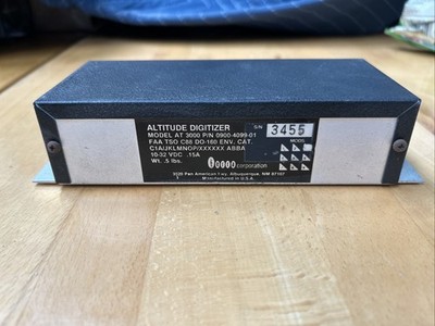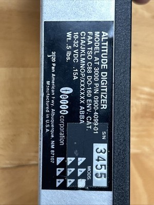 Terra Corporation altitude digitizer/encoder. model AT 3000. Part number: 0900–4099–01. Serial number: 3455. Weight: 0.5 pound. Input power: 10–32 VDC at 0.15 Amp.