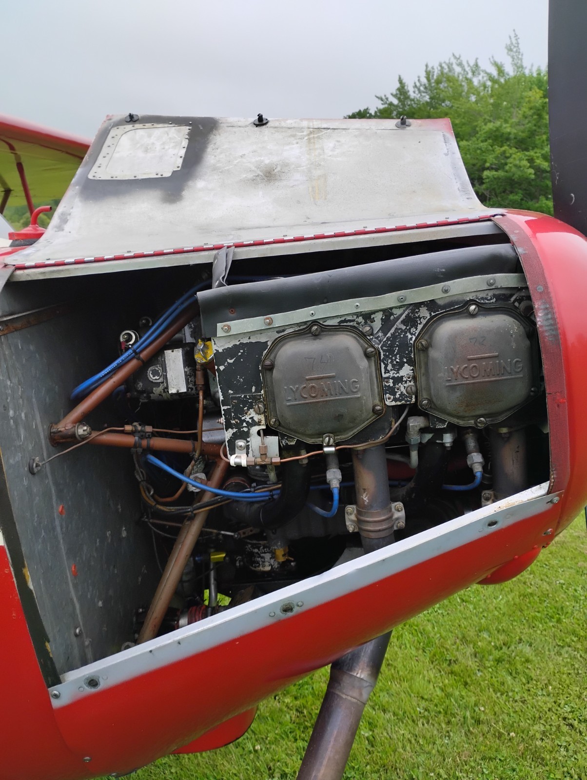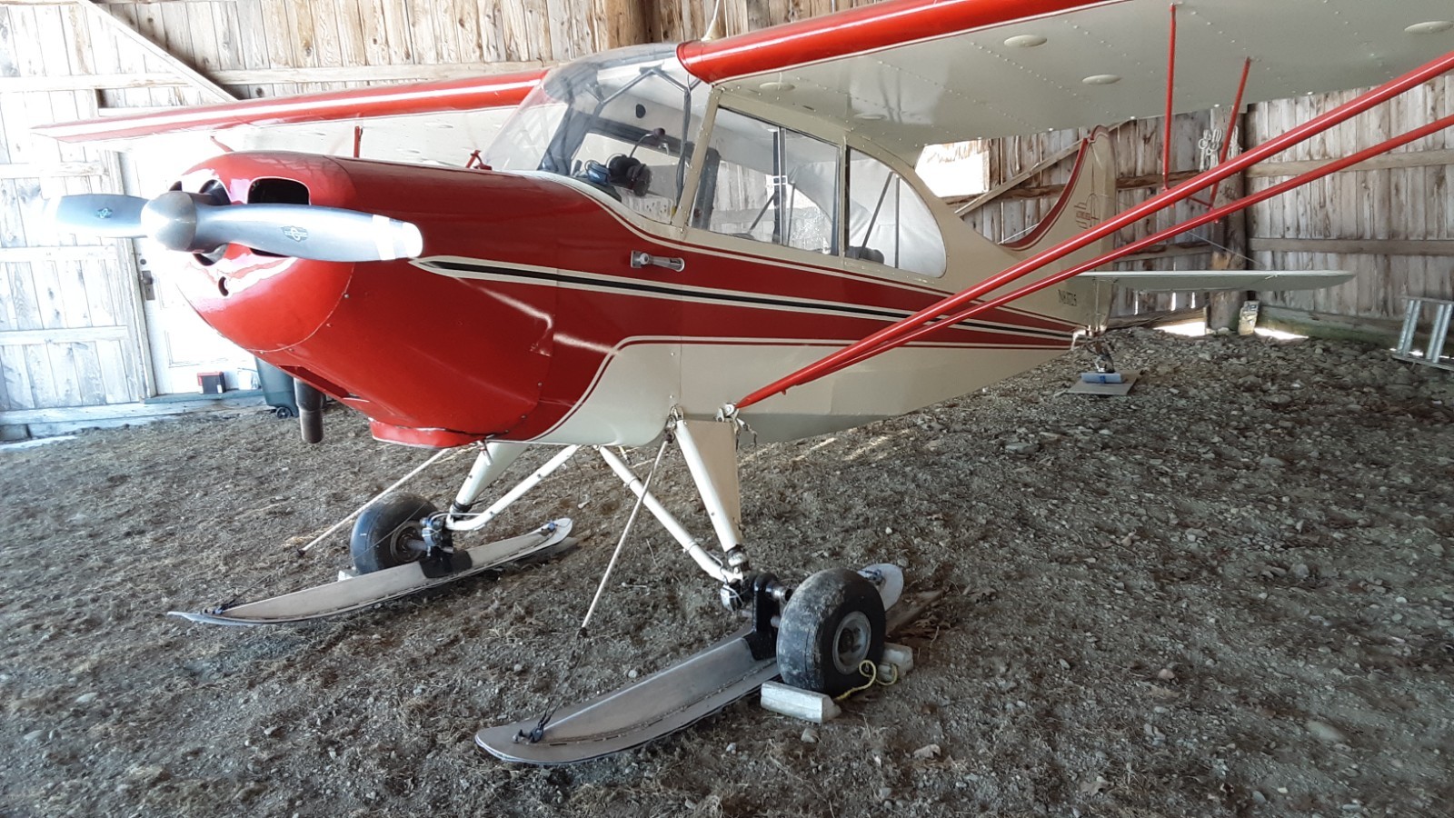 108 HP 0235-C1 Lycoming engine. Buzz Wagner conversion STC. Sensenich prop., auto fuel STC., Cleveland wheels and brakes, 700-6 tires, no bounce gear, Scott tailwheel, 12 gallon cowl tank, 12 gallon wing tank, header tank.