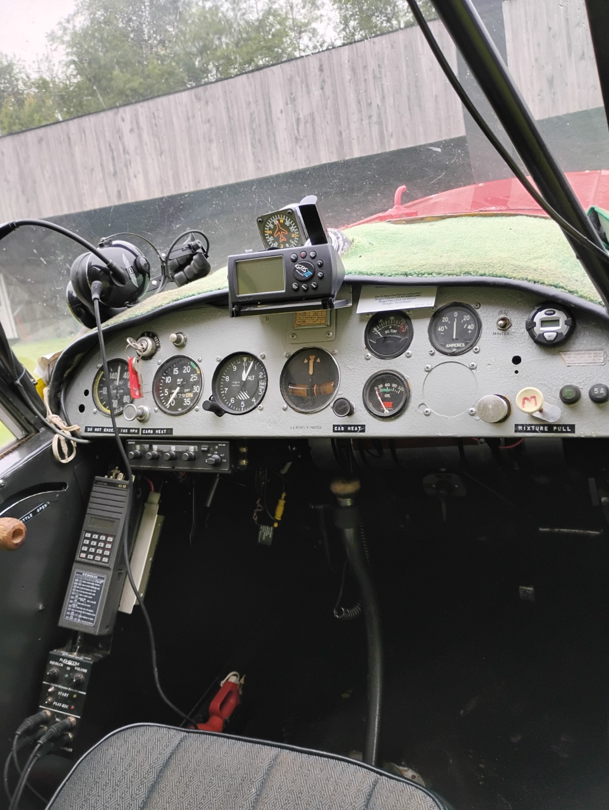 Vertical card compass, Garmin transponder, Flightcom intercom, Bendix King KX99 radio, Garmin GPS III, Pointer ELT, ASA headsets.
