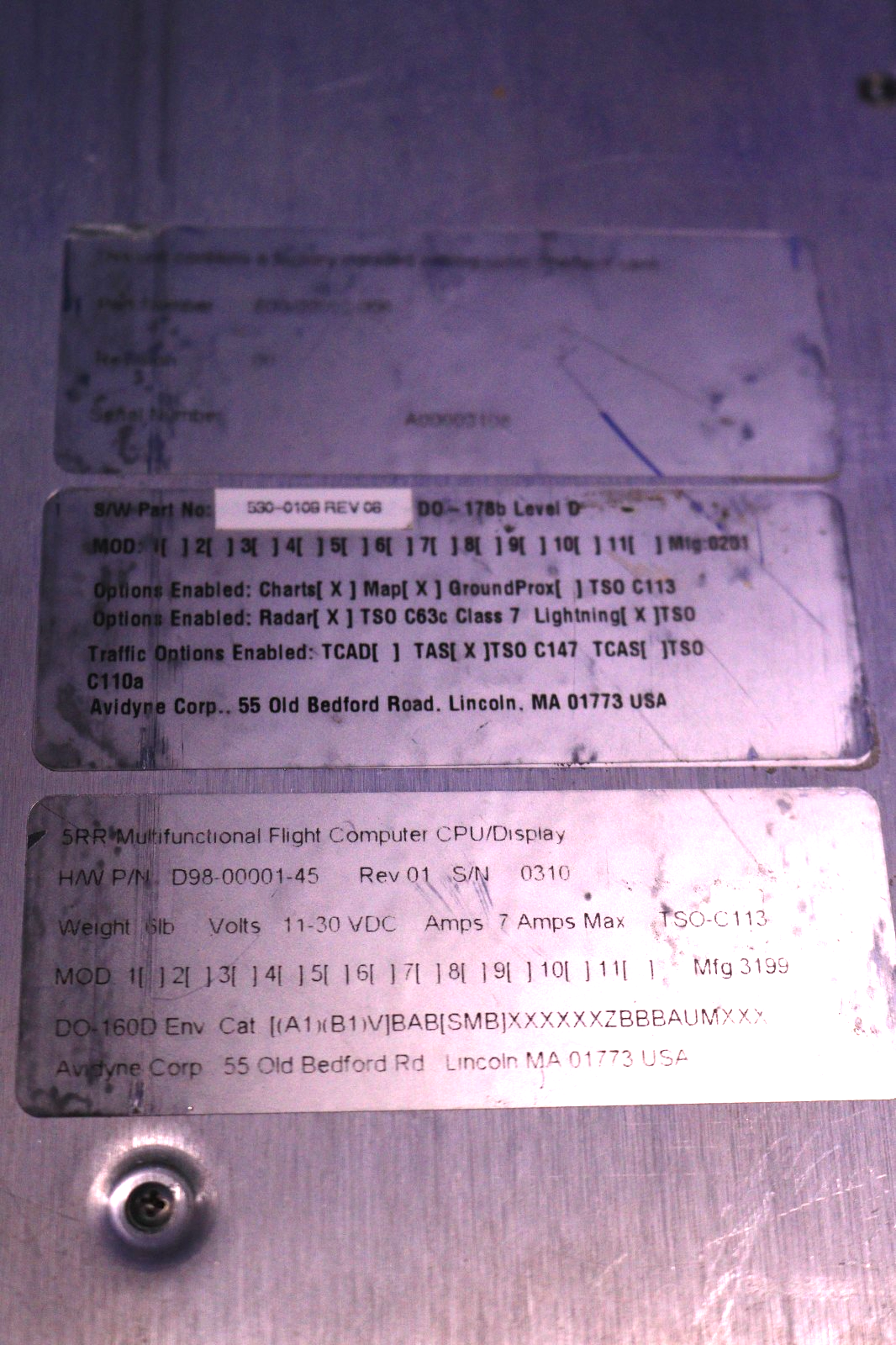 This is an Avidyne Flight Situation Display, serial number 0310. Item was removed from a previous installation and has not been functionally tested.