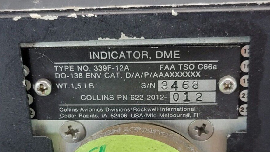 COLLINS DME INDICATOR 622-2012-012Click here to purchase or contact the seller of this item on eBay |