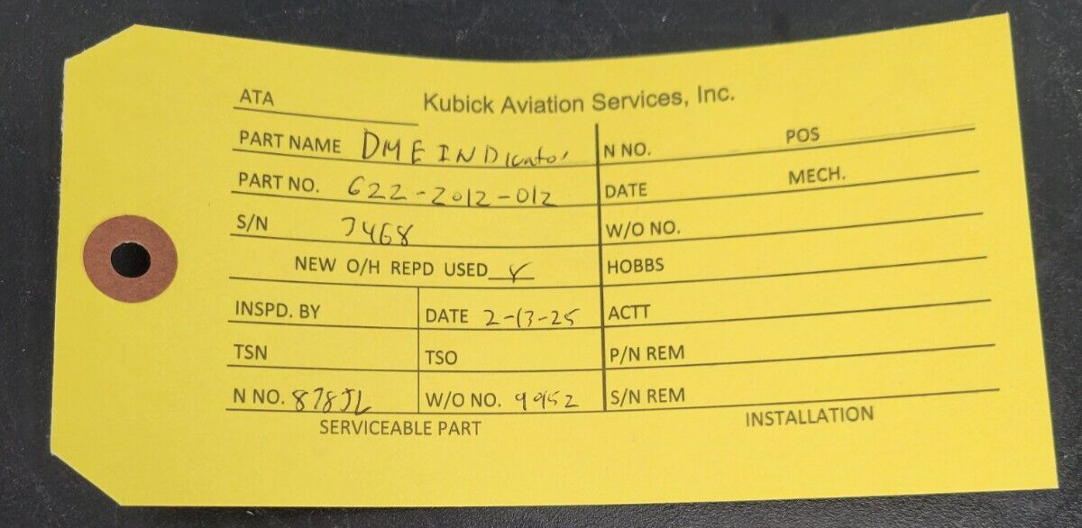 This unit is tagged serviceable as removed from a working environment in a 1982 Cessna 441 on 02/13/2025 by Kubick Aviation Services, Kingsford, MI. S/N: 3468