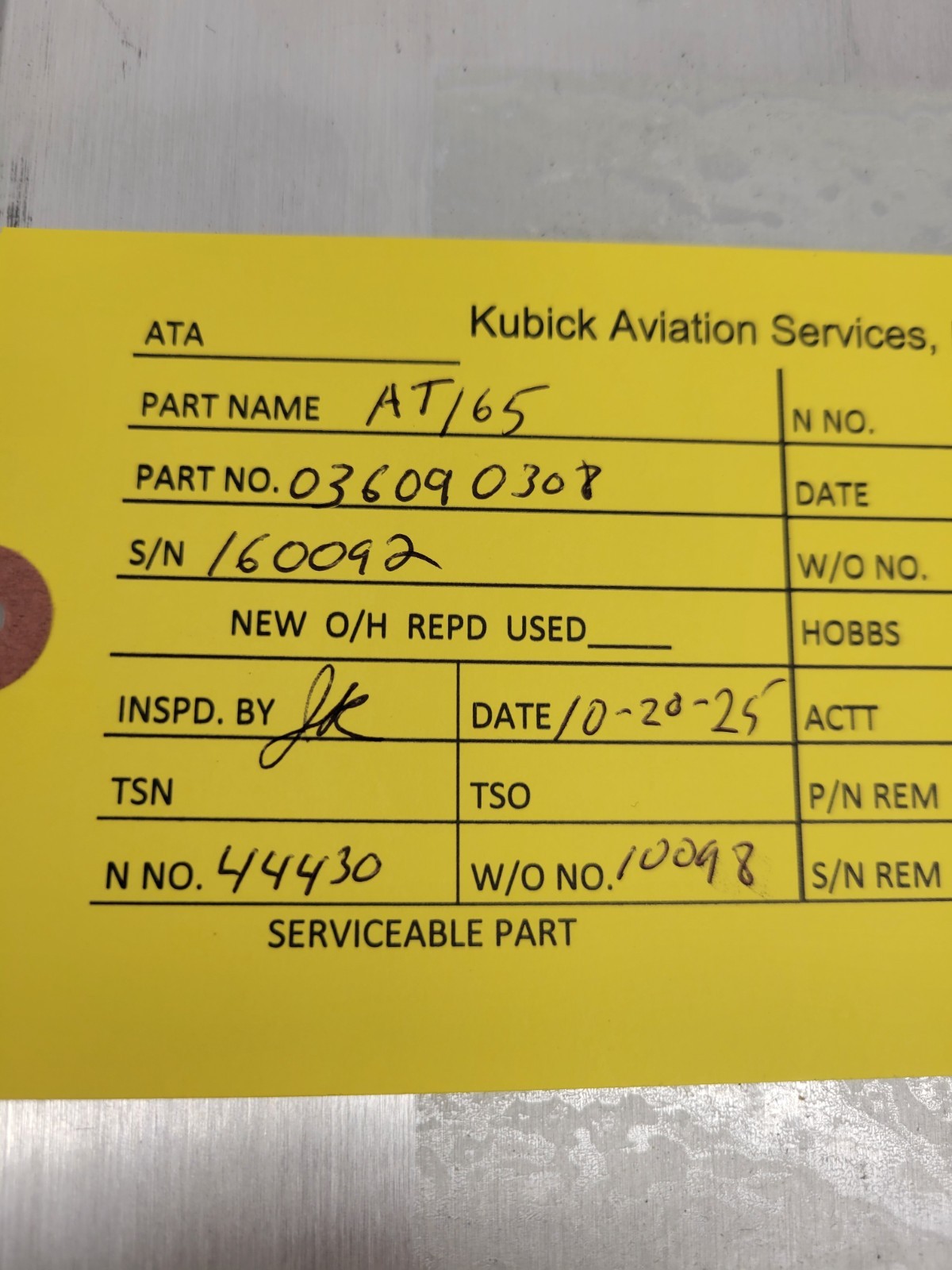 unit is tagged serviceable as removed from a working environment on a 1974 Piper