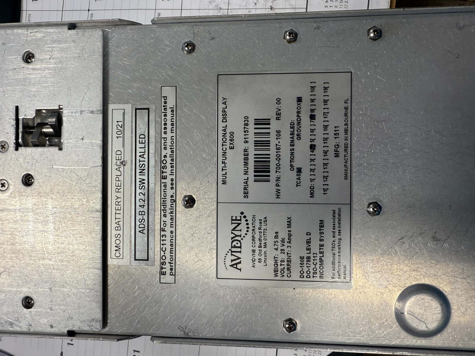 AVIDYNE MULTI FUNCTION DISPLAY 700-00167-106 Yellow tagged was working when removed for upgrade.
